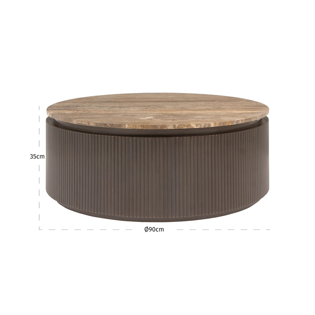 Russo Ash Brown & Travertine Round Coffee table 90cm