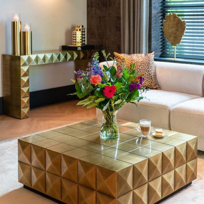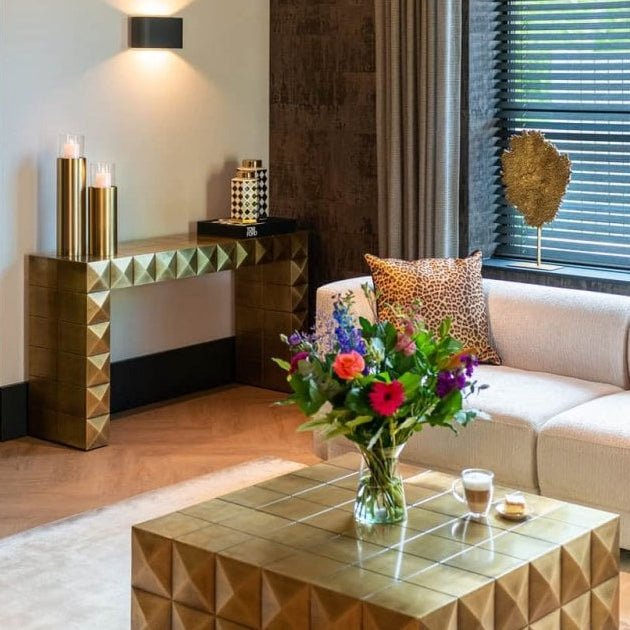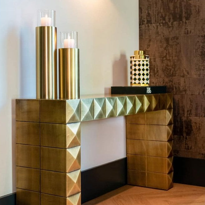 Introduce a touch of glamour to your home with the Collada Console in Brushed Gold from Decorum Interiors. Designed to impress, this statement piece combines sleek modern styling with timeless elegance.