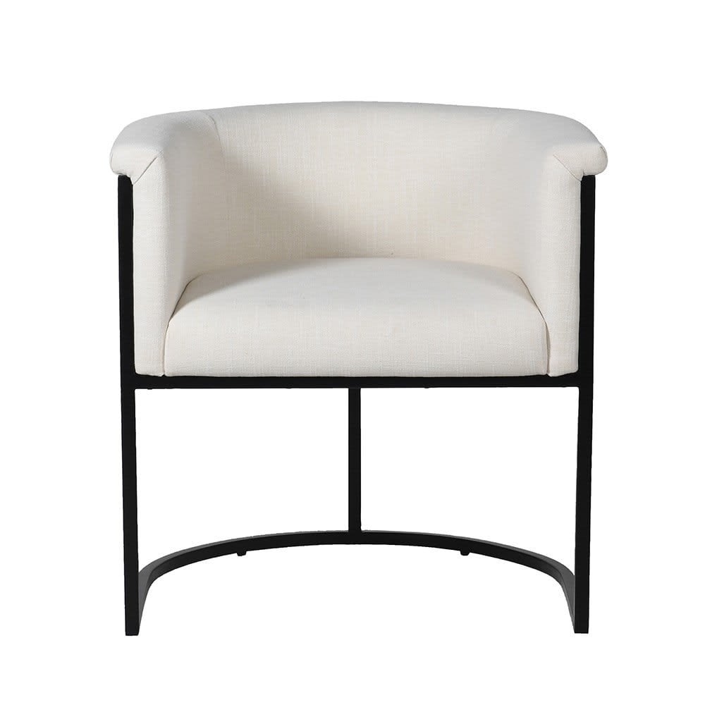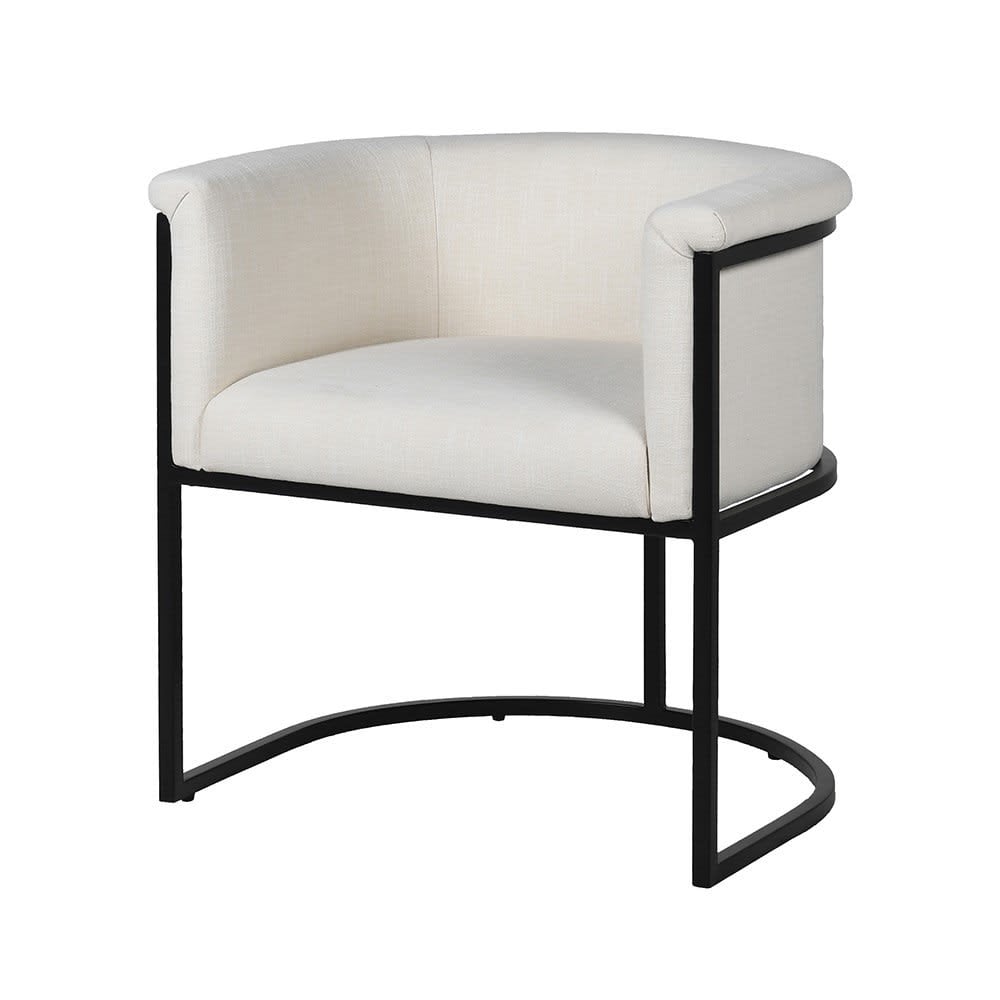 Dining Chair Black Steel Frame and White Curved Fabric Chair