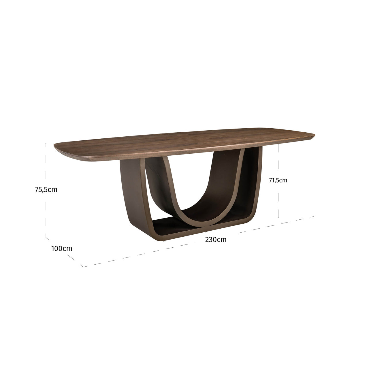 Windsor Brass Base & Walnut Top Dining table - 230cm
