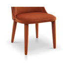 Introduce sophistication with the Liang & Eimil Diva Dining Chair in Megan Oxide. This chair features striking red-toned recycled velvet fabric, offering warmth and visual allure. Its armless design enhances versatility in various spaces, while the contoured backrest ensures supreme comfort. A chic choice for dining rooms or living areas, it embodies elegance and eco-conscious design.