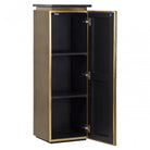 Its striking ribbed brass exterior conceals a single door, opening to reveal a shelved interior ideal for keeping your space organized. Topped with a sleek square black marble surface, it’s the perfect stage for showcasing cherished ornaments or decorative accents. Whether adding a touch of grandeur to your living room or bringing sophisticated charm to your hallway, this piece adapts beautifully to your needs.