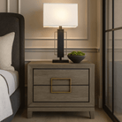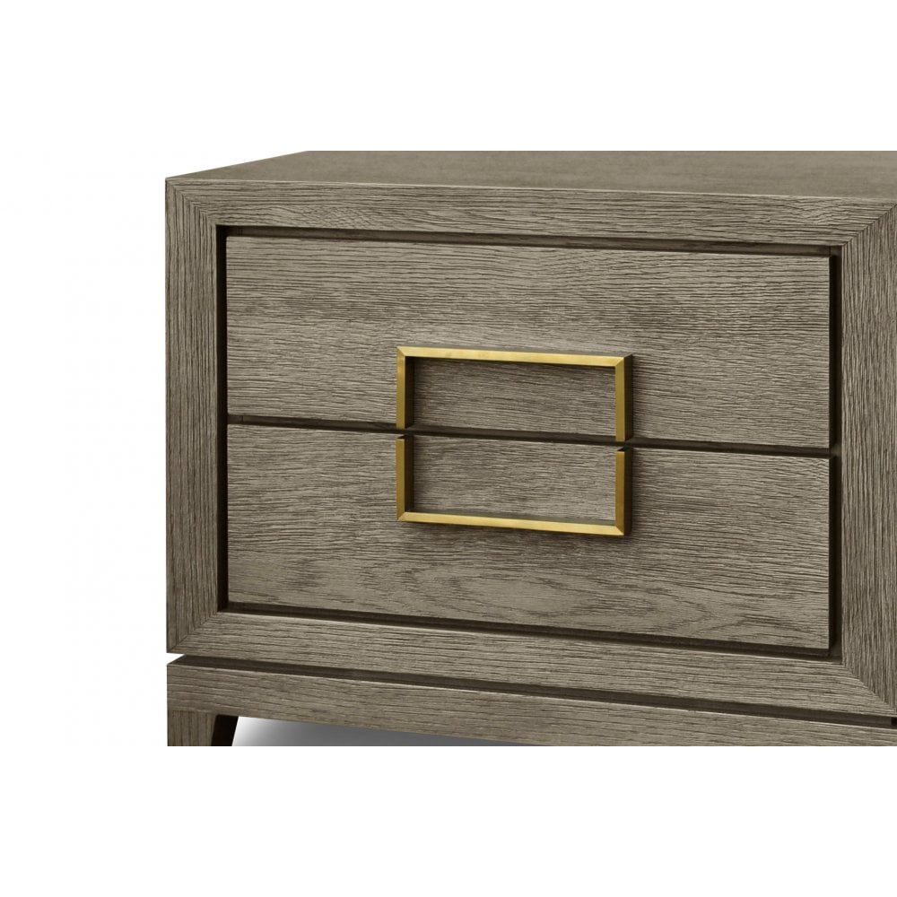 Lucca Two Drawer Bedside Table in Grey Oak Wood with Gold Handles