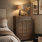 Lucca Tall Chest of Drawers Walnut Wood with Gold Handles 5 Drawers