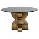 Elevate your dining space with the Maddox Round Dining Table, featuring a luxurious brass base and a sleek black marble tabletop. This sophisticated piece blends modern elegance with timeless design, making it a stunning centrepiece for contemporary and classic interiors alike. The rich veining of the black marble pairs beautifully with the warm metallic brass finish, creating a bold yet refined statement.
