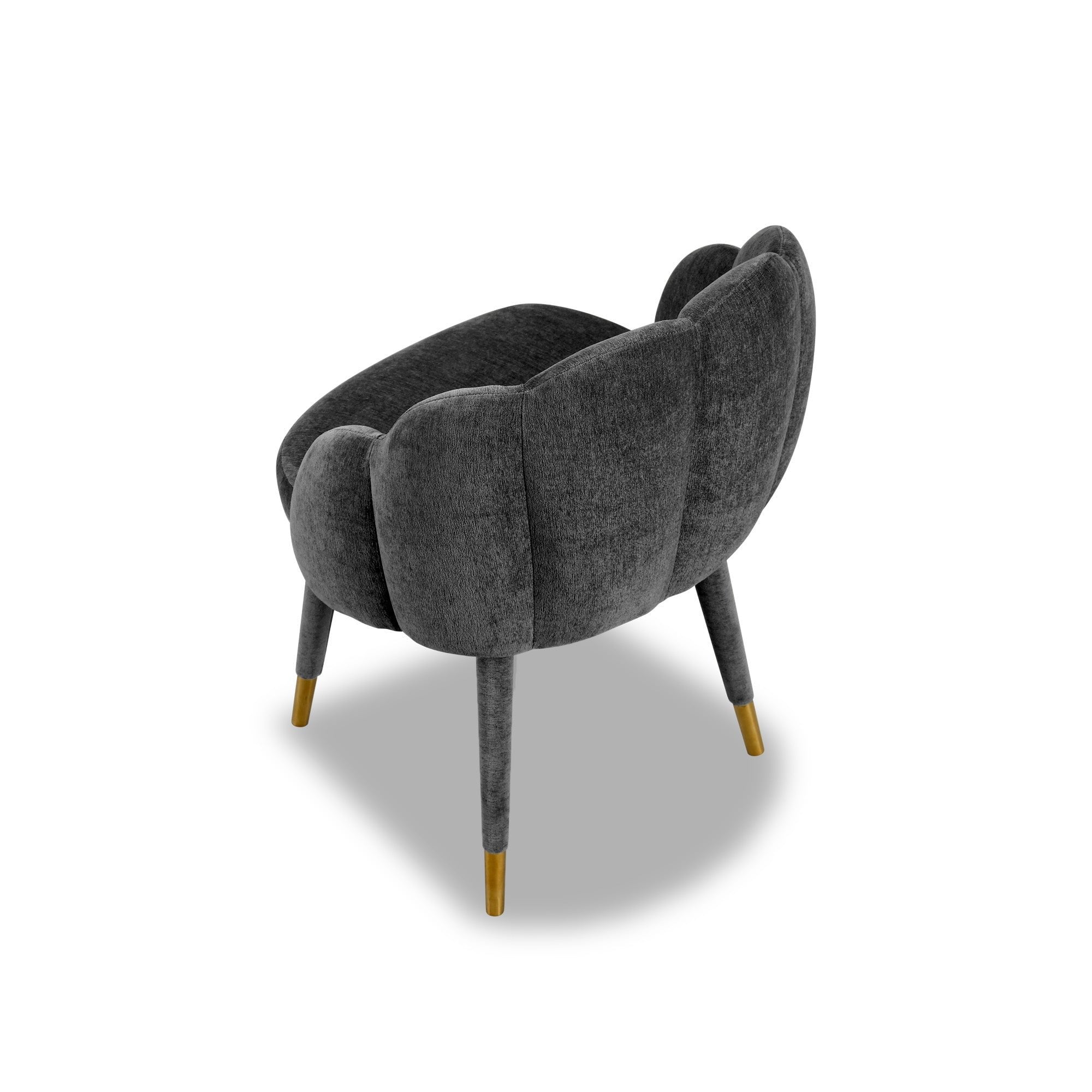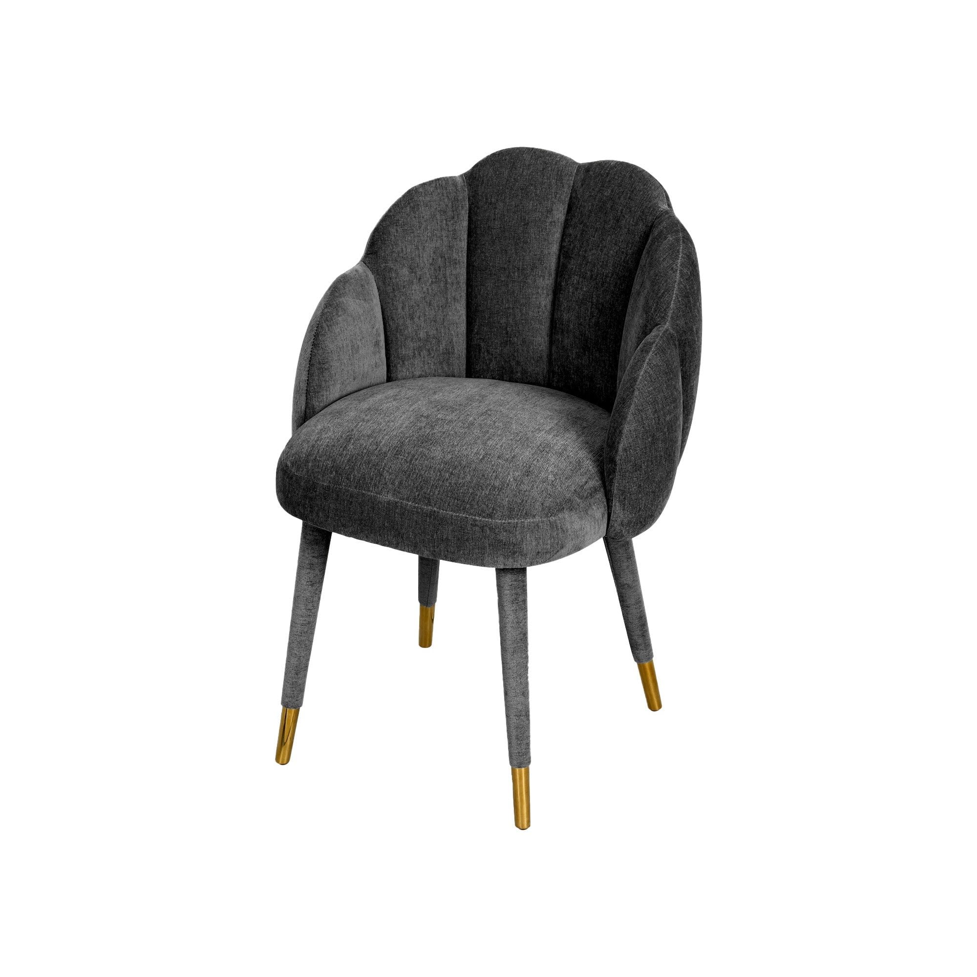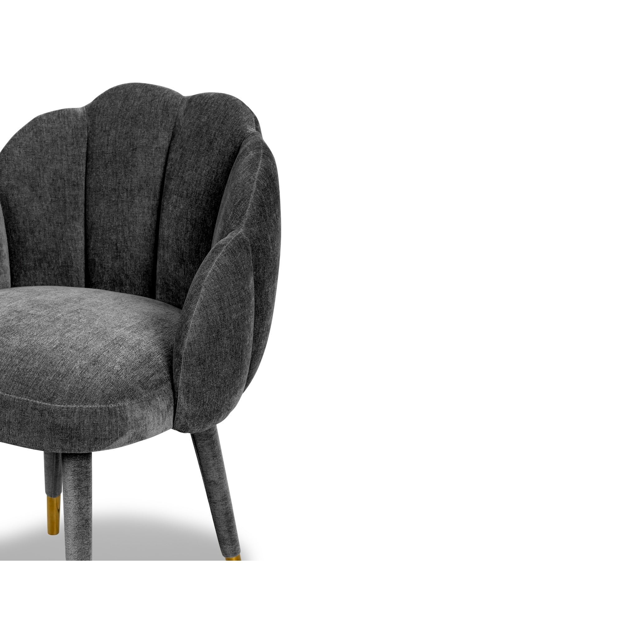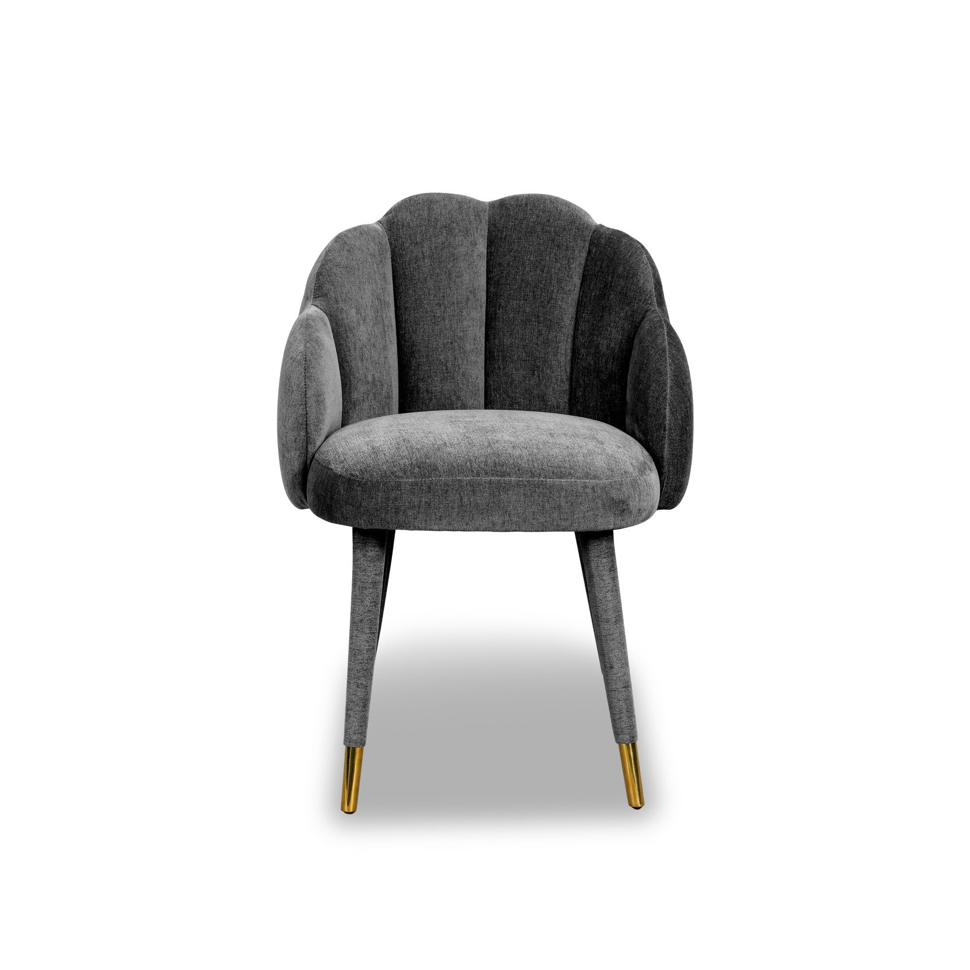 The Mina Dining Chair, adorned in luxurious Sysley Chalk velvet, elegantly marries contemporary style with Art Nouveau influence. Its exquisite clamshell design and meticulously stitched detailing enhance any space—be it a dining room or lounge. Supported by solid wooden legs and polished brass cups, this chair brings an elevated touch to your décor, creating a stunning focal point.