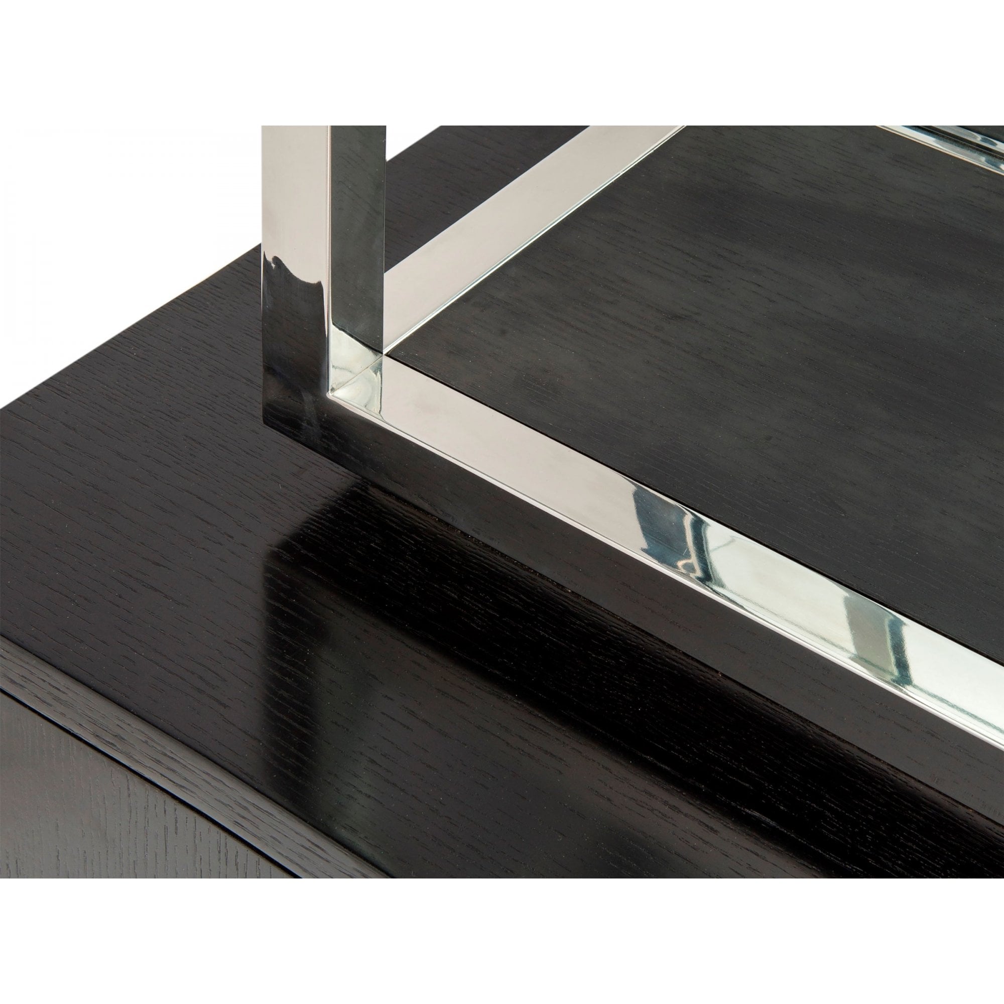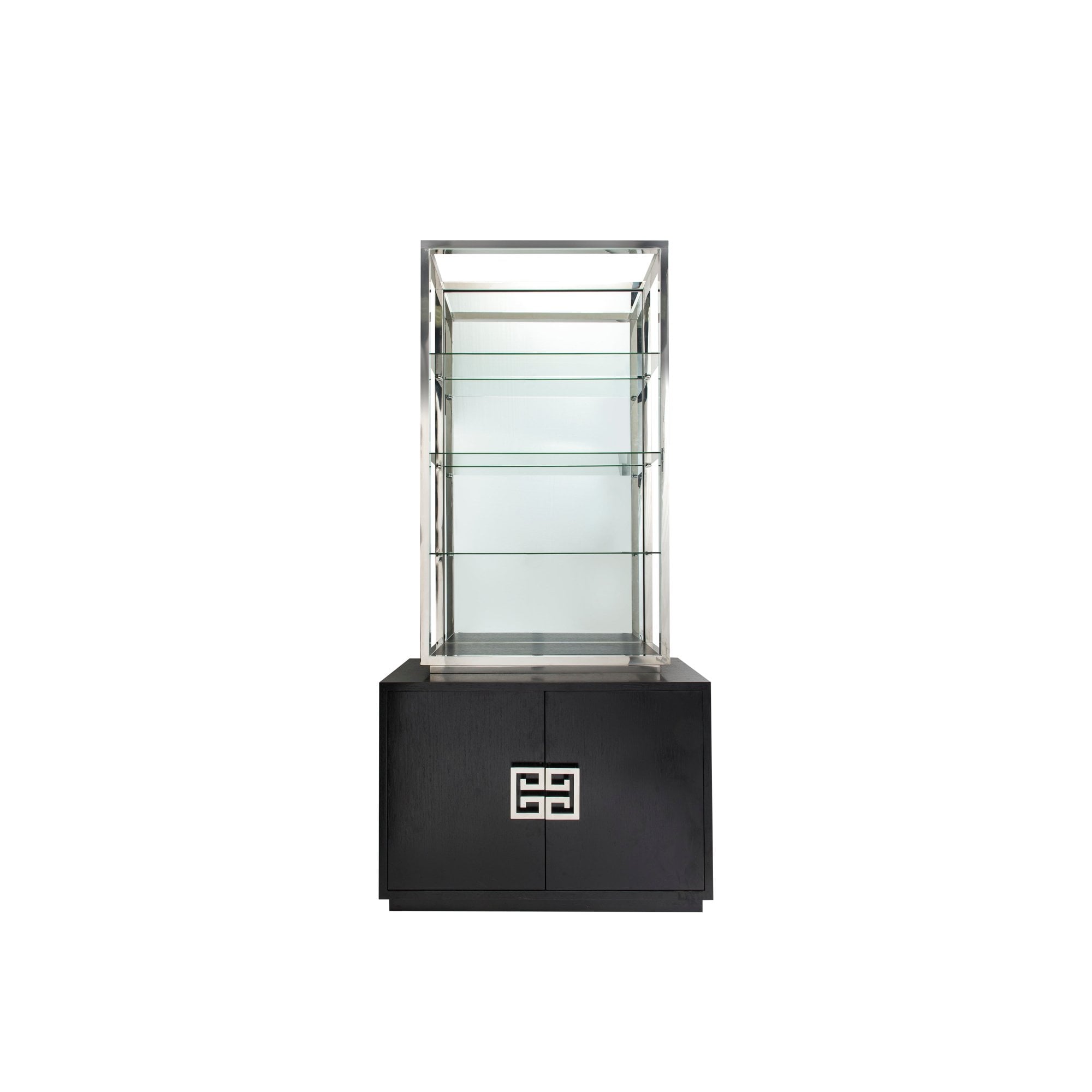 Enhance your living space with the Nobbu Shelving unit, embodying modern sophistication with its black ash veneer base and sleek polished stainless steel. Featuring four glass shelves, it provides a stunning backdrop for displaying books and collectibles while keeping your belongings organised. Perfect for both residential and hospitality environments, this shelving unit brings elegance and stability to any room.