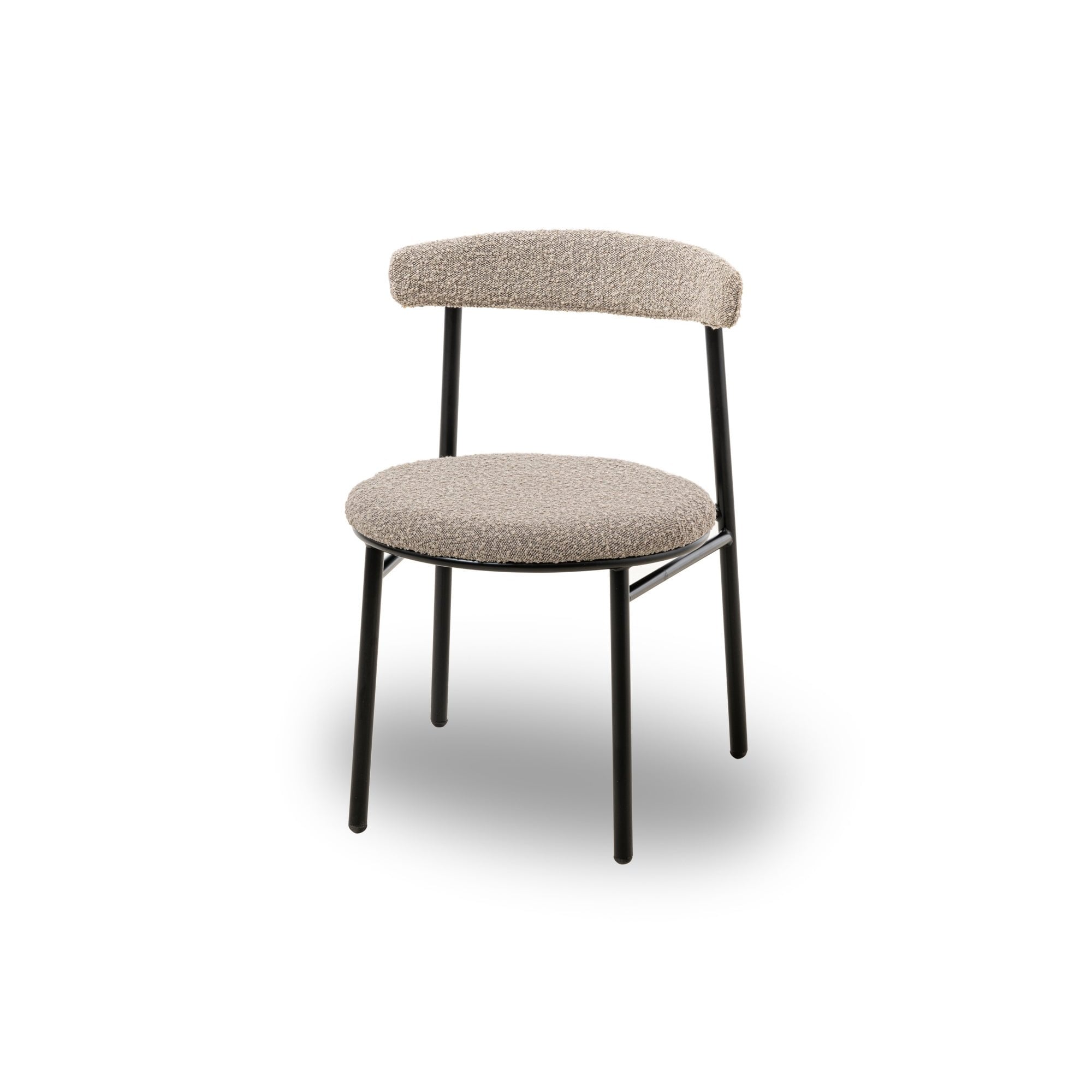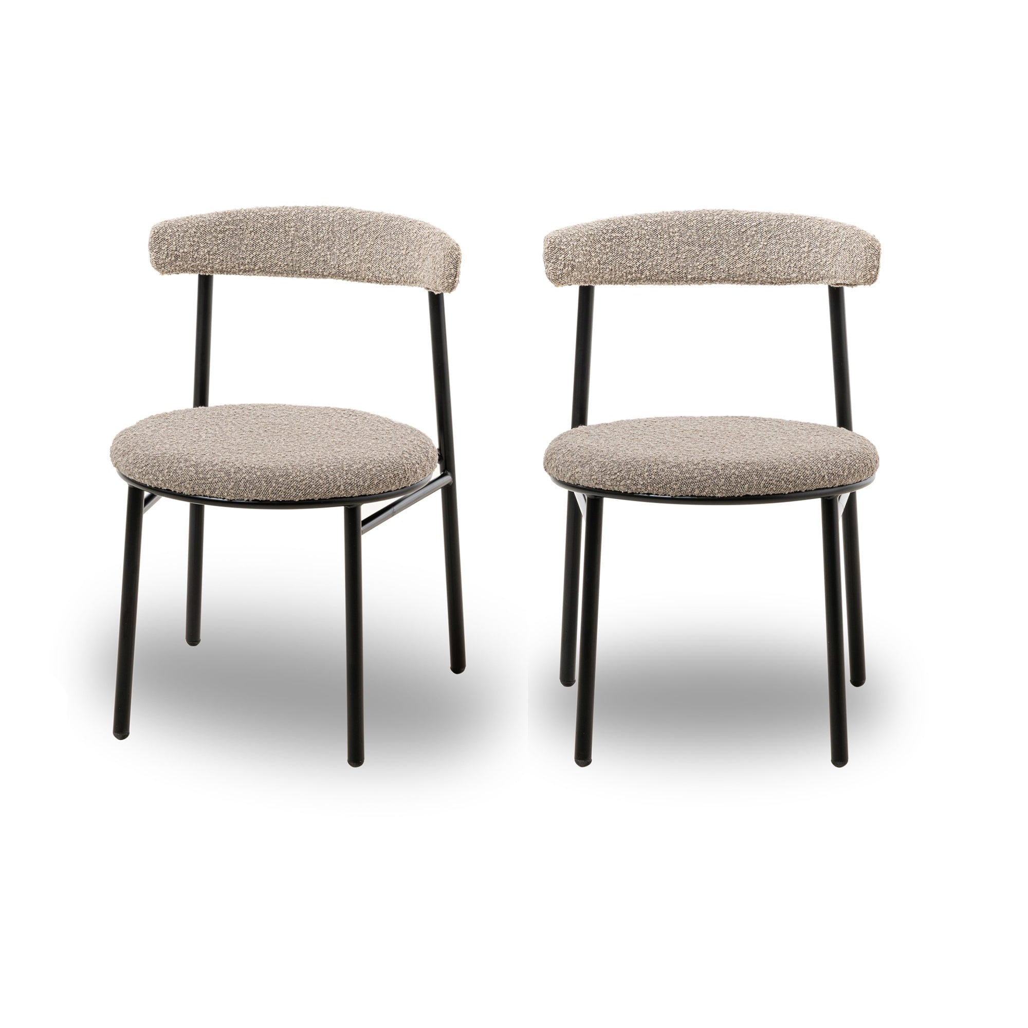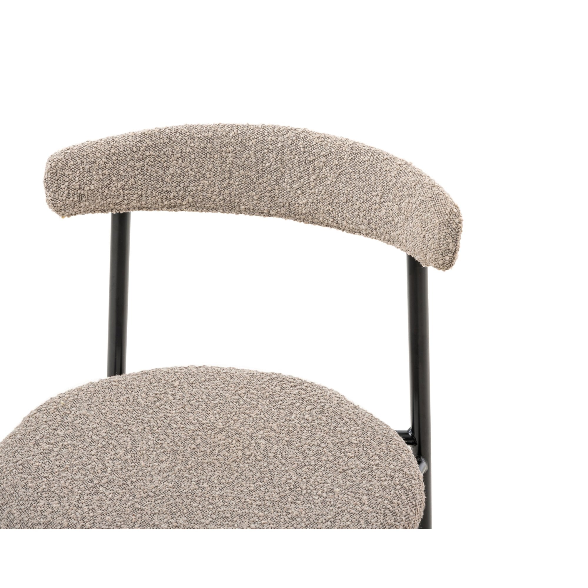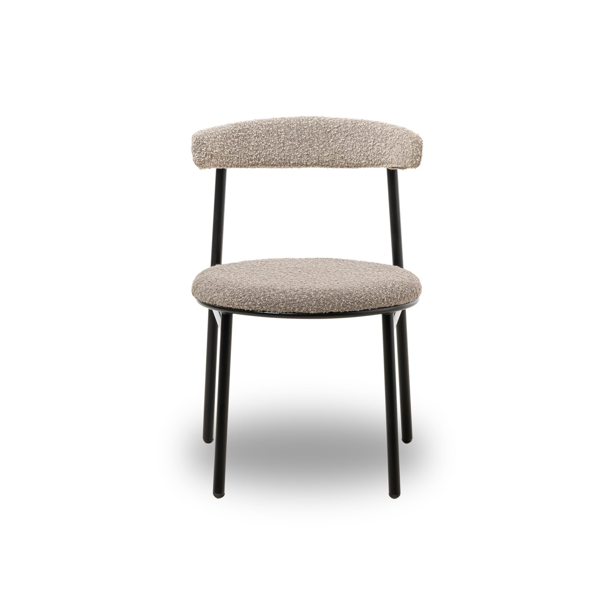 Redefine your dining area with the Nook Dining Chairs in sophisticated boucle taupe. With a contemporary rounded seat and back in a chic matte black metal finish, these chairs reflect both functionality and style. Ideal for enhancing both residential homes and upscale hospitality venues, they promise comfort without compromising on elegance.