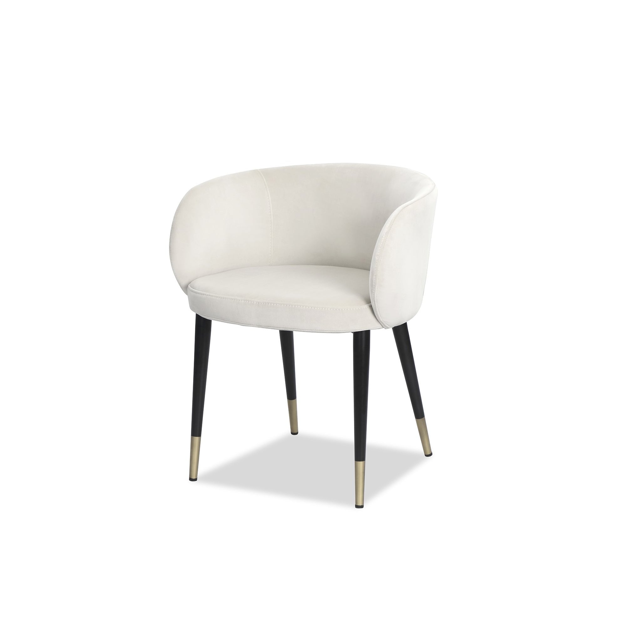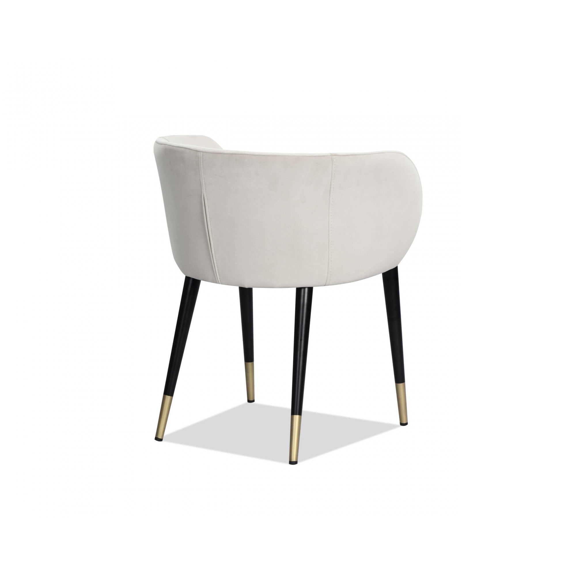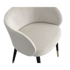 Elevate your dining experience with the Ola Dining Chair, expertly upholstered in plush Kaster Pebble Velvet. Its elegantly rounded back and tapered legs, complete with refined brass tips, marry retro charm with modern sophistication, ensuring it is a versatile addition to both residential and upscale hospitality interiors.