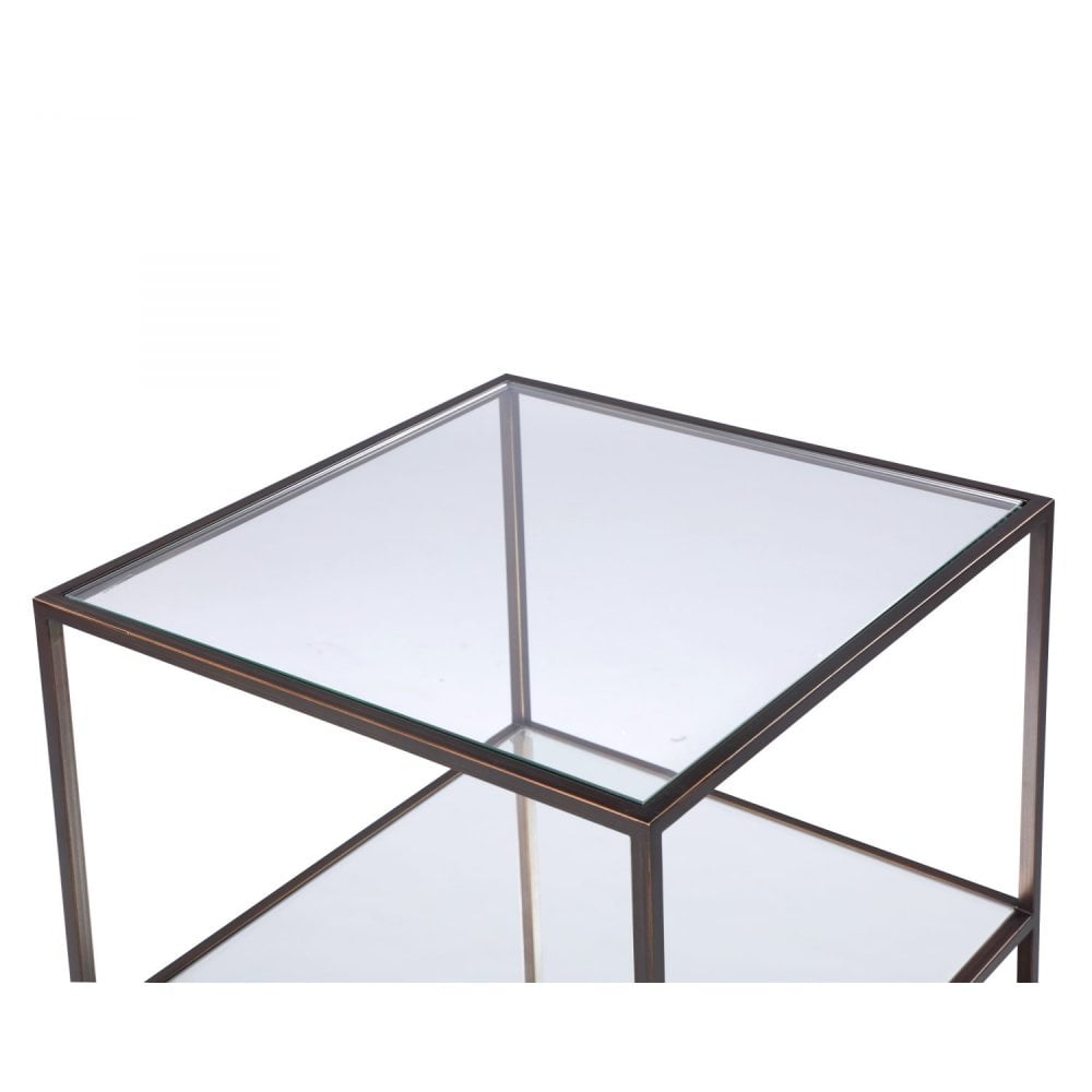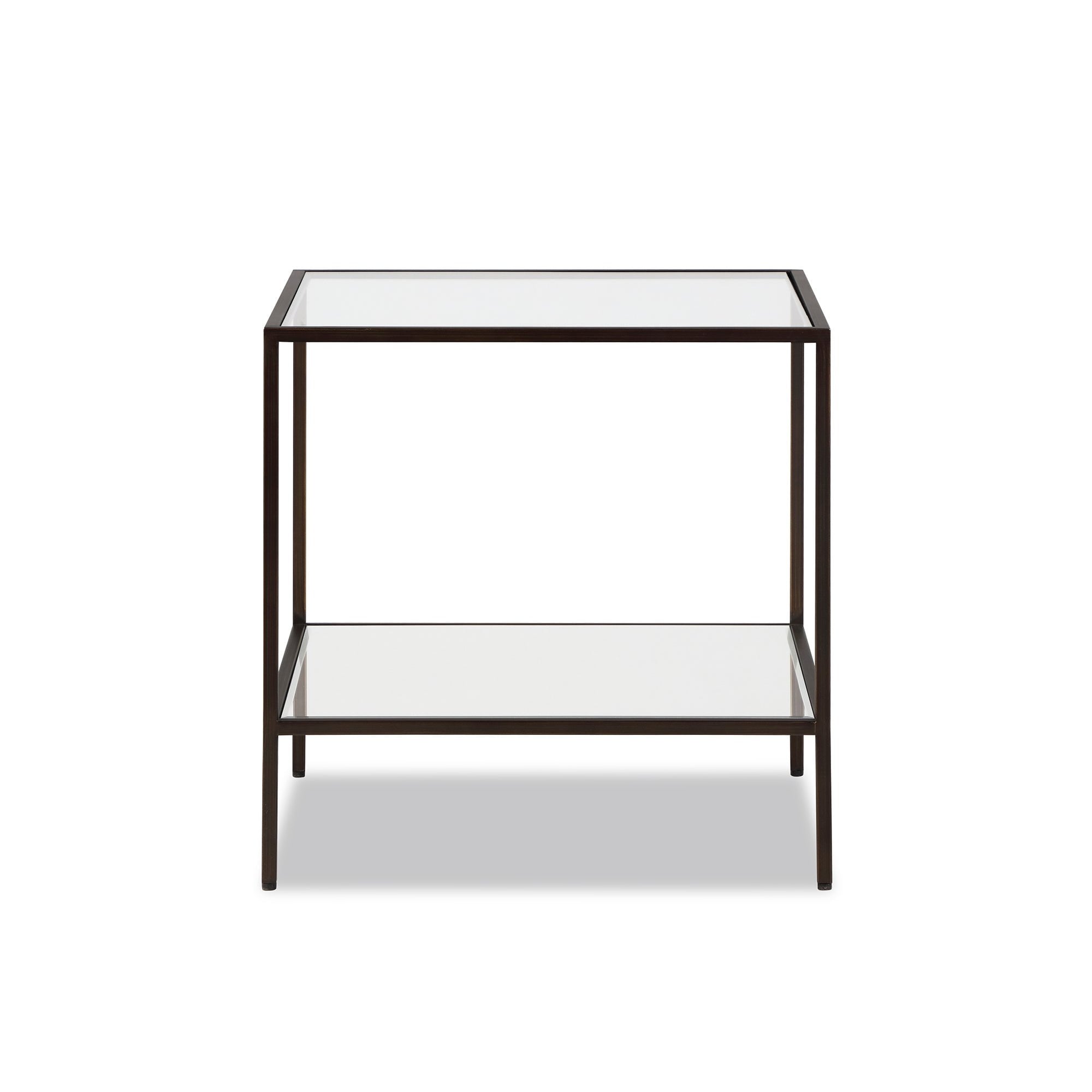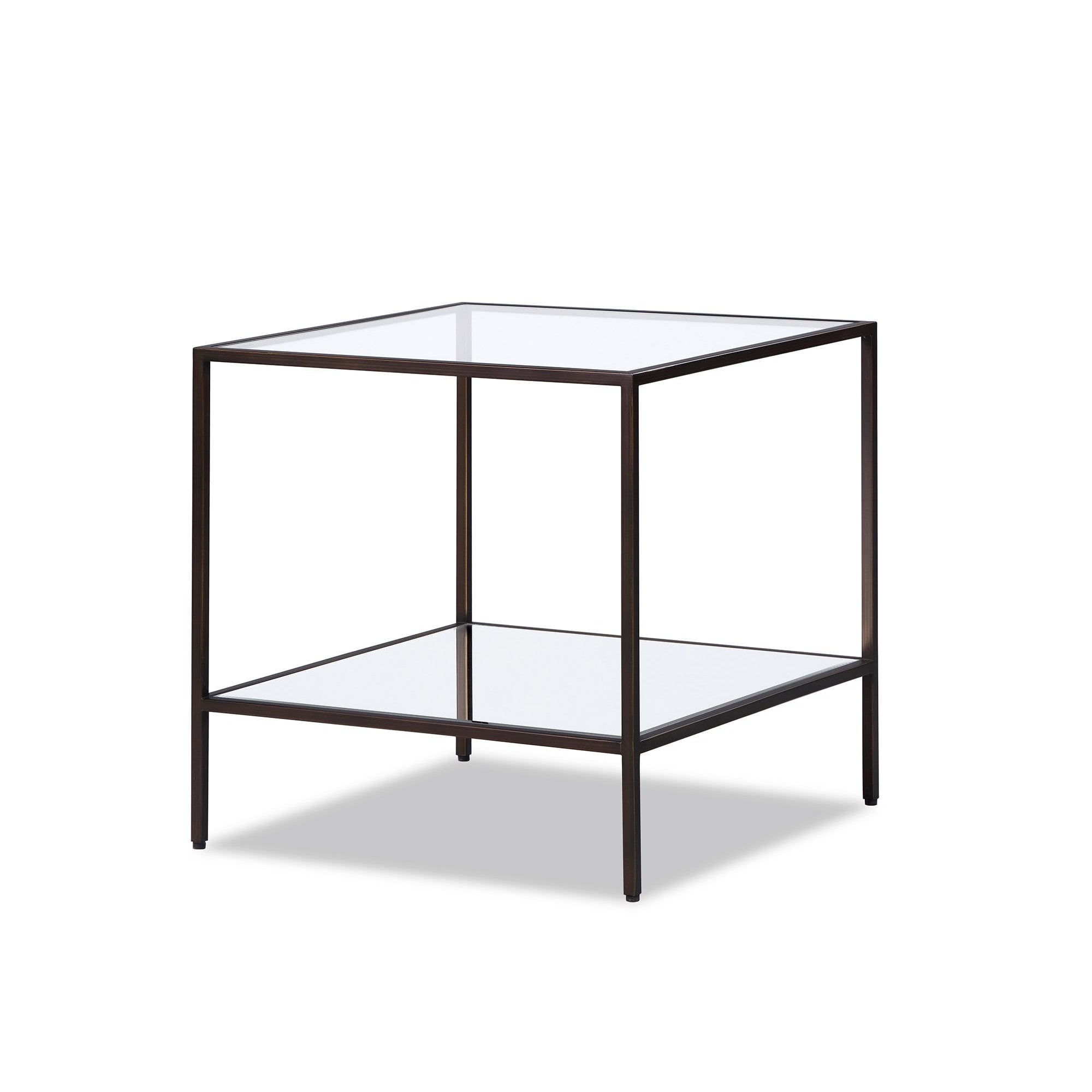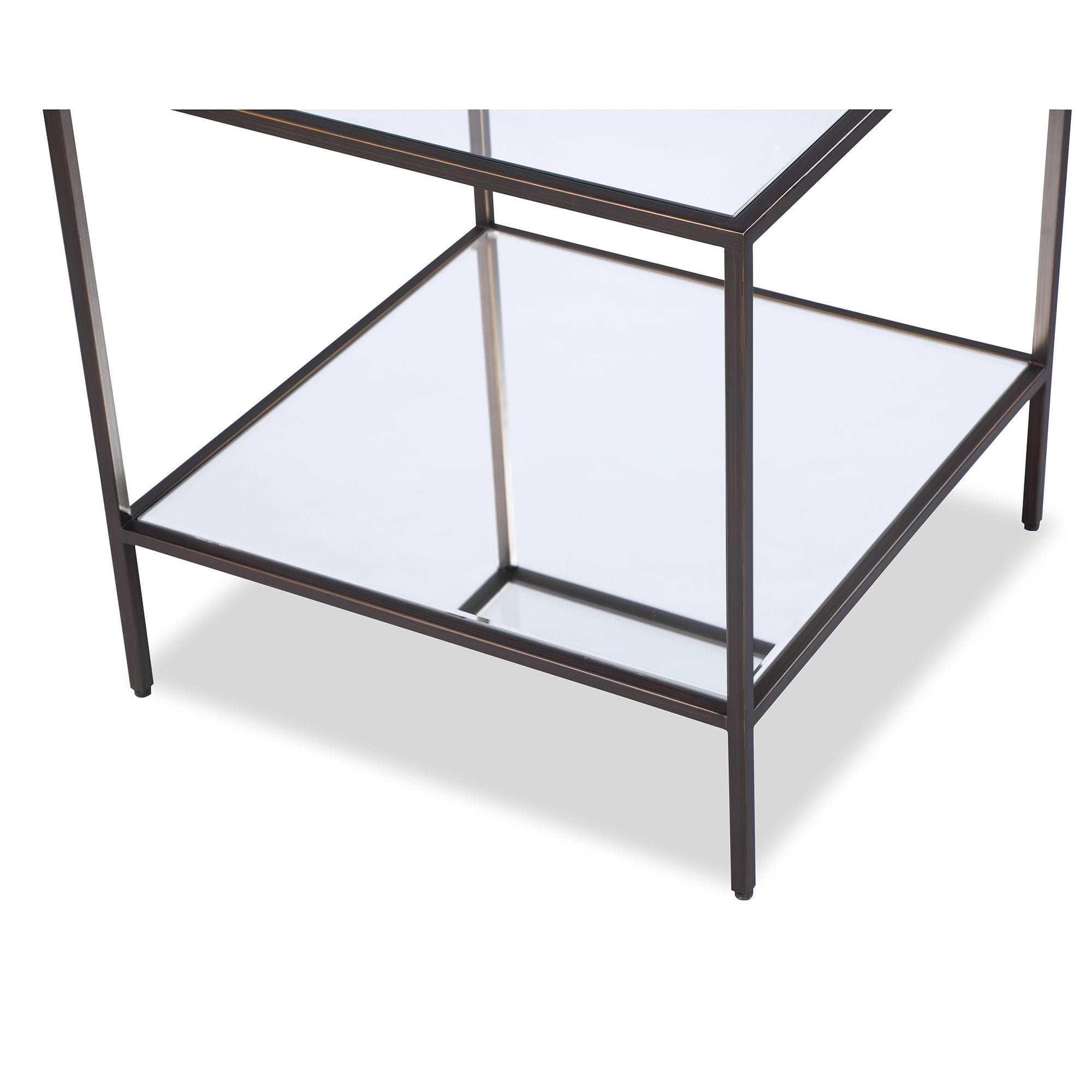 Bring a touch of elegance to your home with the Oliver Side Table, featuring a clear tempered glass top and a mirrored undertier framed in antique bronze-finished steel. This modern piece is perfect for accentuating your living space next to a sofa or in pairs beside a bed, combining versatile design with rustic charm for residential and hospitality settings alike.