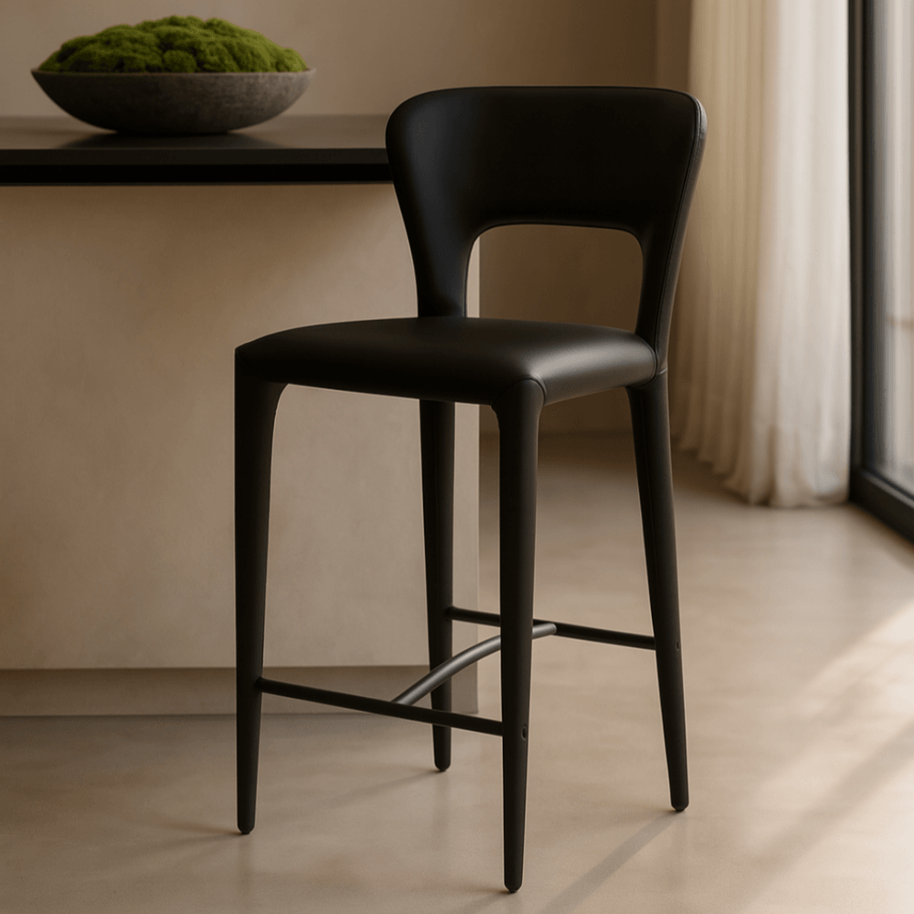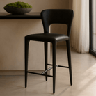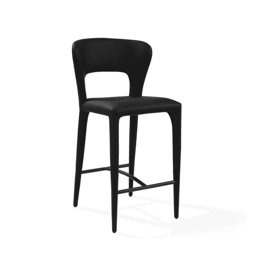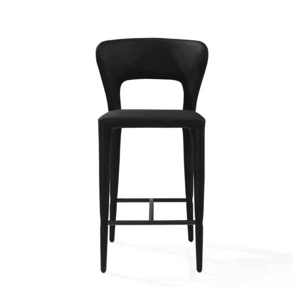 The Pari I Bar Stool, fully upholstered in sleek Mustang Black CPU with a subtle grain effect, brings an element of luxury and sophistication to any modern space. Its refined silhouette exudes understated elegance, making it the perfect addition to a contemporary bar or stylish kitchen. The rich texture of the Mustang Black, combined with its sleek form, creates a captivating centerpiece that enhances the ambiance of any interior.