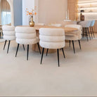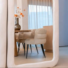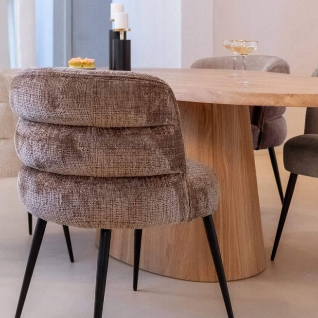This dining table features a light wood oak finish that exudes warmth and elegance. Manufactured from mango wood in a natural, light colour, crafted into organic shapes. This modern collection is perfect for those seeking a fresh and contemporary aesthetic.