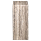 The Dulce collection is crafted from authentic Chinese Guangxi white marble, finished with a grey travertine film, and protected by a matte epoxy coating. This finish creates a uniform appearance free of natural variations or cracks, and makes the surface strong, stain-resistant, and easy to clean. The matte finish gives it a soft look, allowing light signs of wear to blend naturally into the surface over time.