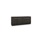 Sleek gold handles add a subtle touch of warmth and contrast, elevating the darker wood tone with a sophisticated edge. The four-door design offers generous concealed storage, making it as practical as it is stylish - perfect for keeping dining, living, or hallway spaces effortlessly organised.
