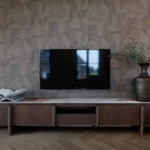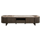 TV cabinet Langford has a dark oak veneer base with a glossy ceramic top. Its low profile and clean design offer both style and storage in modern interiors.
