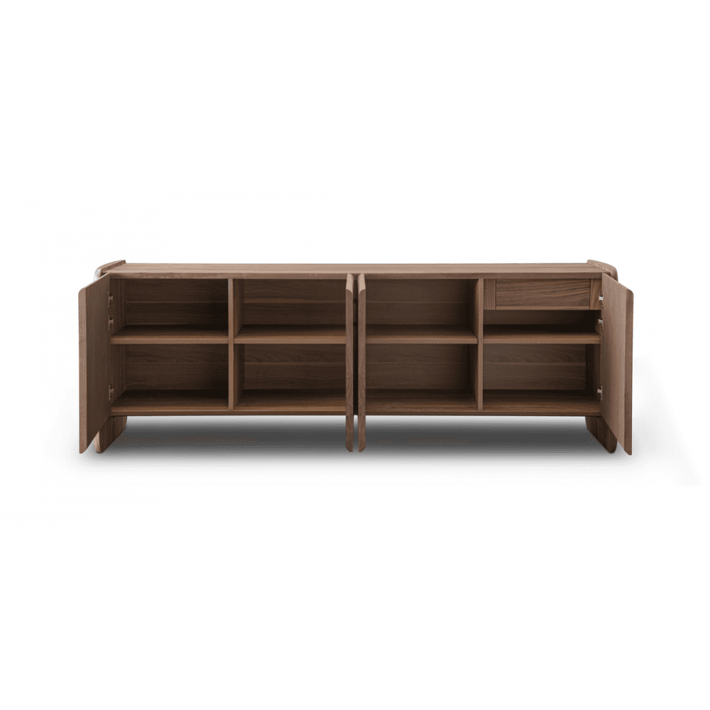 The Underline Buffet pairs practical storage with refined, sculptural design. Its low, linear form is elevated by an undulating base, softening its geometry and adding a sense of movement. Finished in light walnut, it reveals the beauty of the natural grain while infusing the space with warmth and timeless appeal. Behind the seamless facade lies versatile, well-planned storage, concealed with a designer’s precision. Whether in a dining room, living space, or hallway, the Underline Buffet brings structure, function, and an unmistakable air of contemporary elegance.