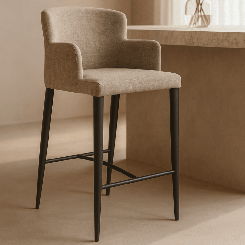Bringing an air of understated luxury, the Varsi Counter Stool in Giselle Olive is the epitome of contemporary elegance. Wrapped in a plush Giselle Olive fabric, this design-led piece offers a perfect blend of comfort and style. The softly curved backrest and integrated arms provide a cocooning feel, ensuring both support and sophistication. Sleek, refined legs complete the look, making it an exquisite addition to any high-end kitchen or entertaining space. Whether styled alone or in a set, the Varsi Counter Stool introduces a refined, organic warmth that complements both modern and classic interiors.