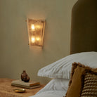 With its bold profile and warm material palette, Maddox offers a refined take on Art Deco symmetry. A gently sculptural slumped glass shade, available in Mist or Light Smoke, glows softly within a sleek Satin Brass bracket, it's rippled surface and smoky hue adding depth and character.