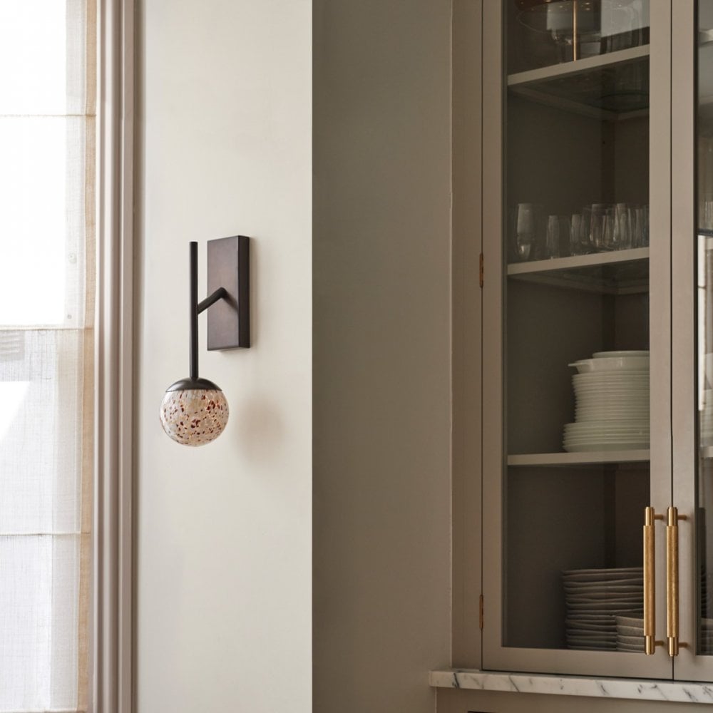 Elevate any space with the Silas Double wall light. The glass shades feature small speckles of molten glass in copper and neutral tones. When viewed closely, you can see the individual grains of the pattern, but from a distance the speckles merge to create a completely different design. This is one of the great charms of Silas, also available as a pendant and single wall light.