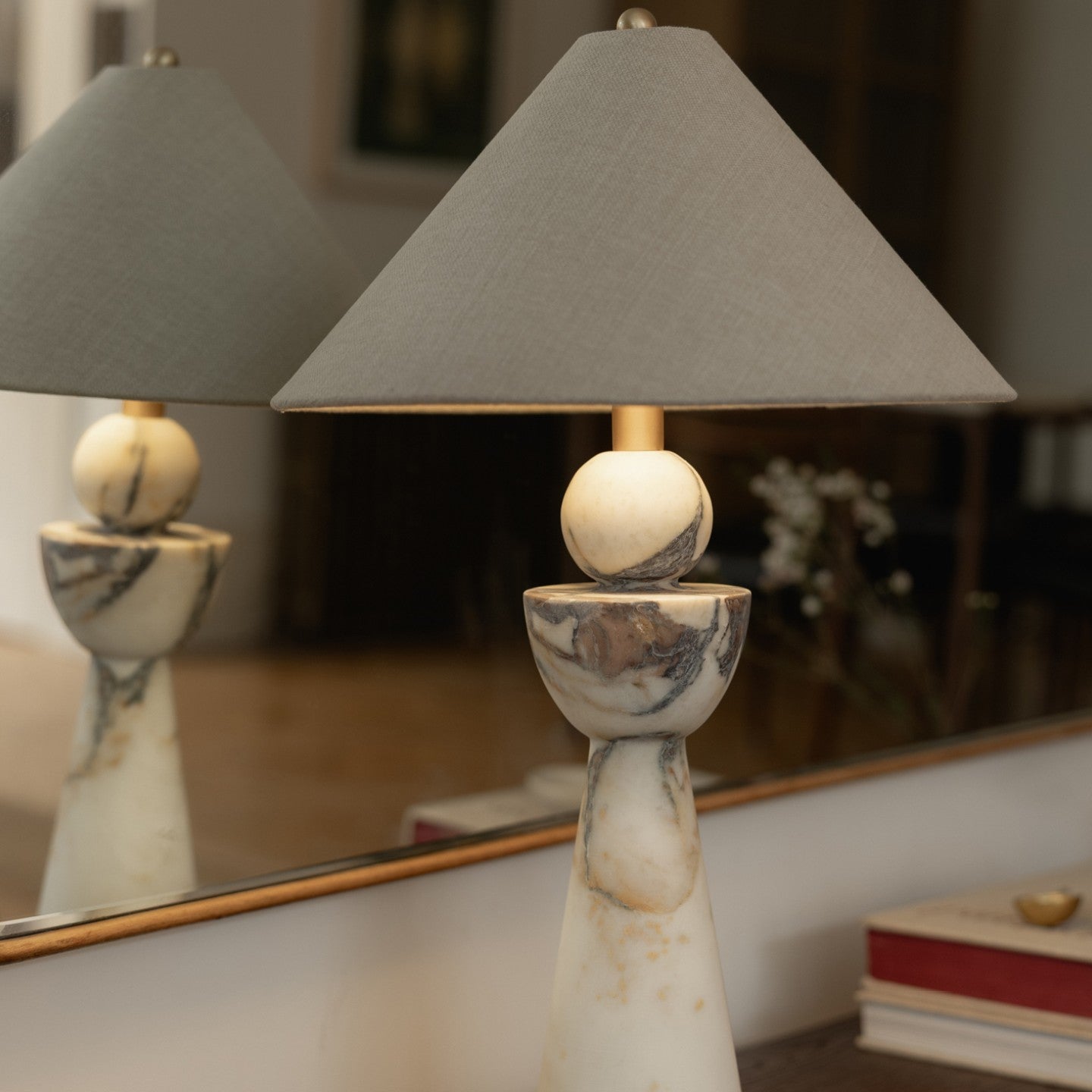 Marble is a natural material with distinctly unique formations, markings and colouration. It is part of its charm that no two lamps are exactly the same. All metalwork is handcrafted and may vary from piece to piece with slight variations in finish and detailing.