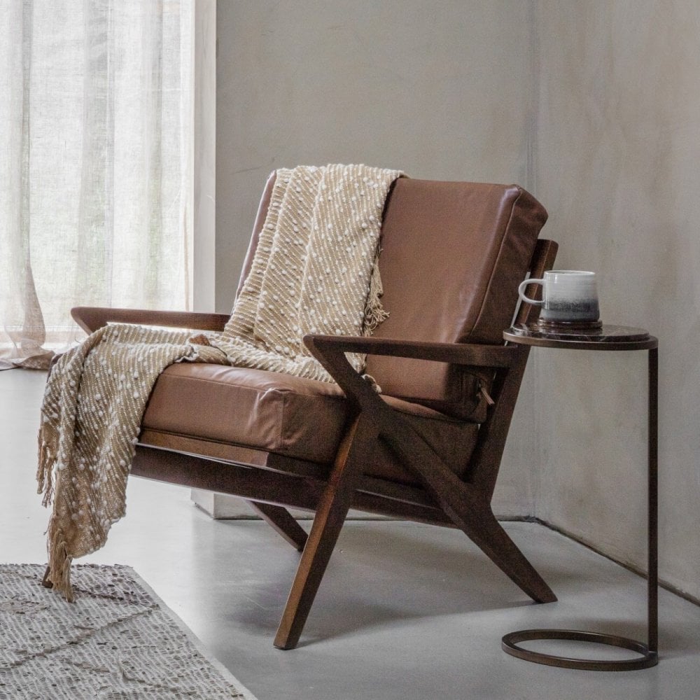 Iota Forest Brown Marble & Smoked Gold Side Table
