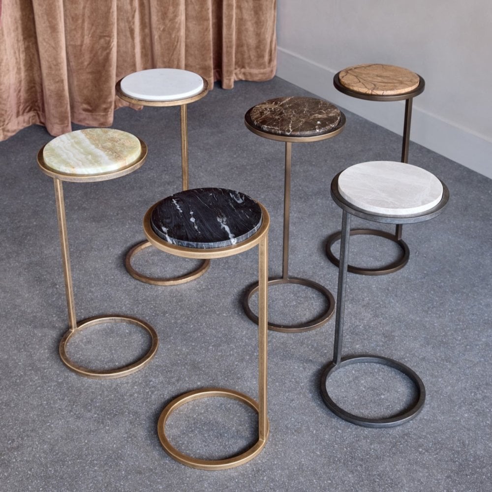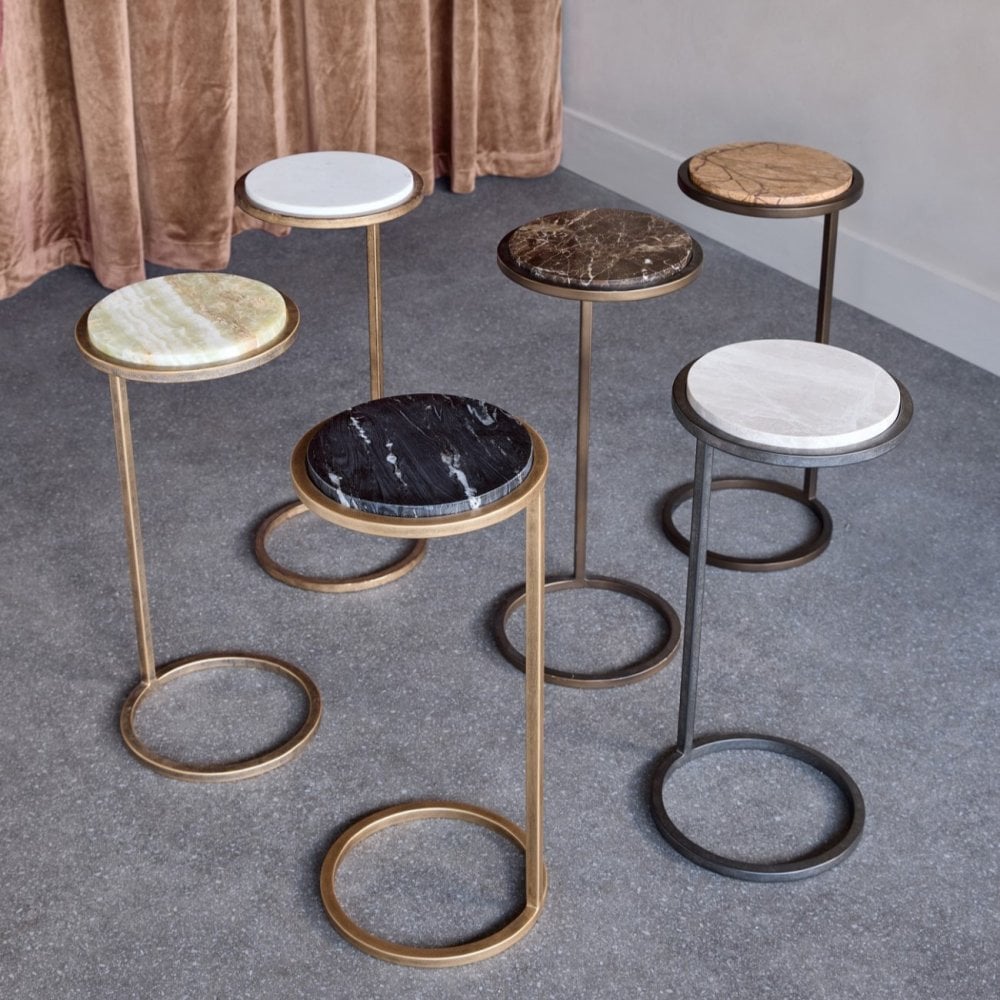 Iota Grey Emperador Marble & Aged Silver Side Table