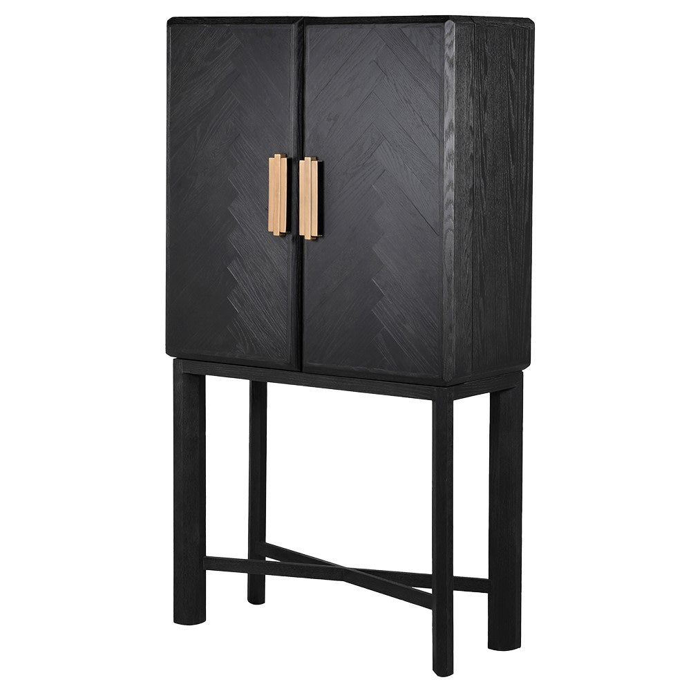 Black 2 Door Bar Drinks Cabinet with Brass Handles