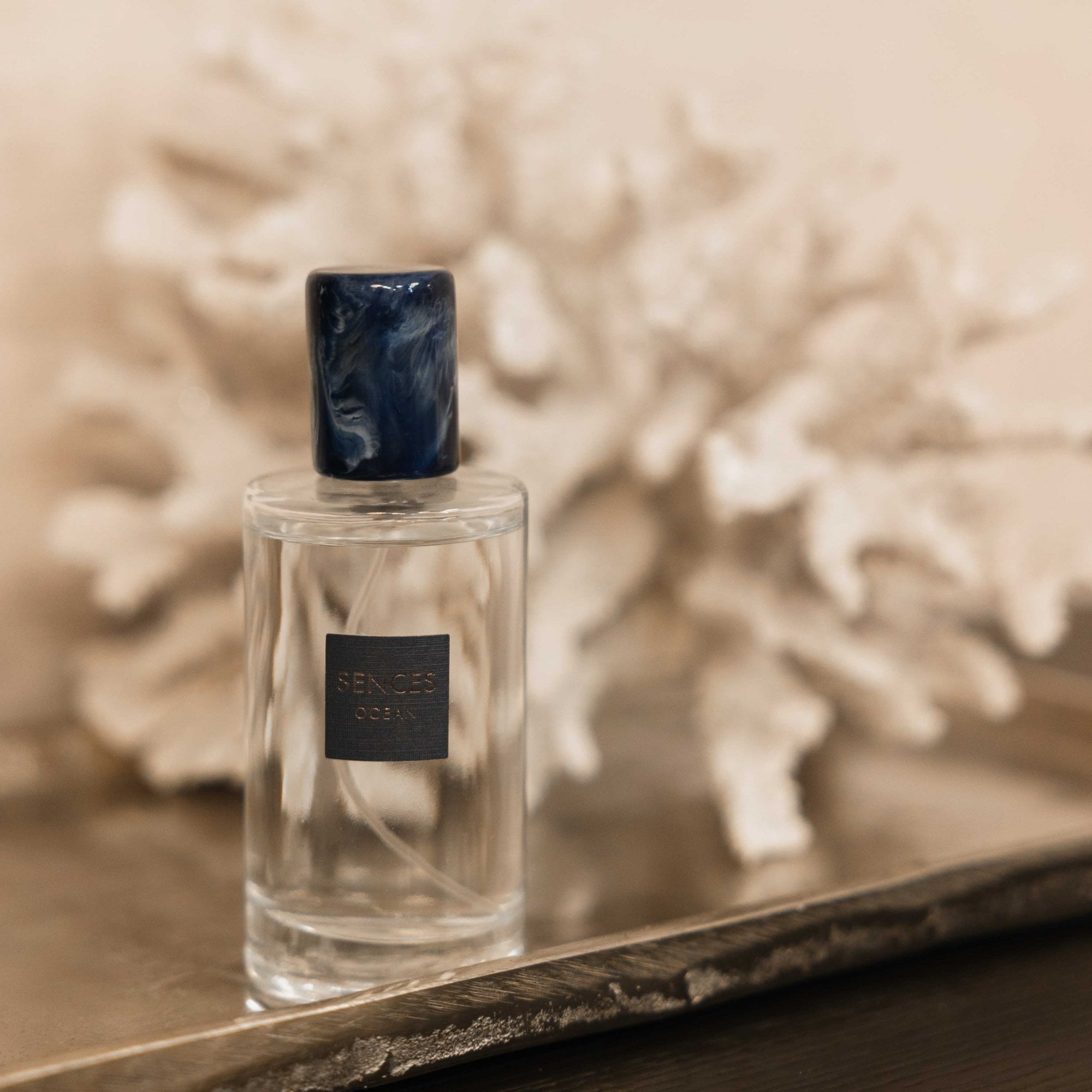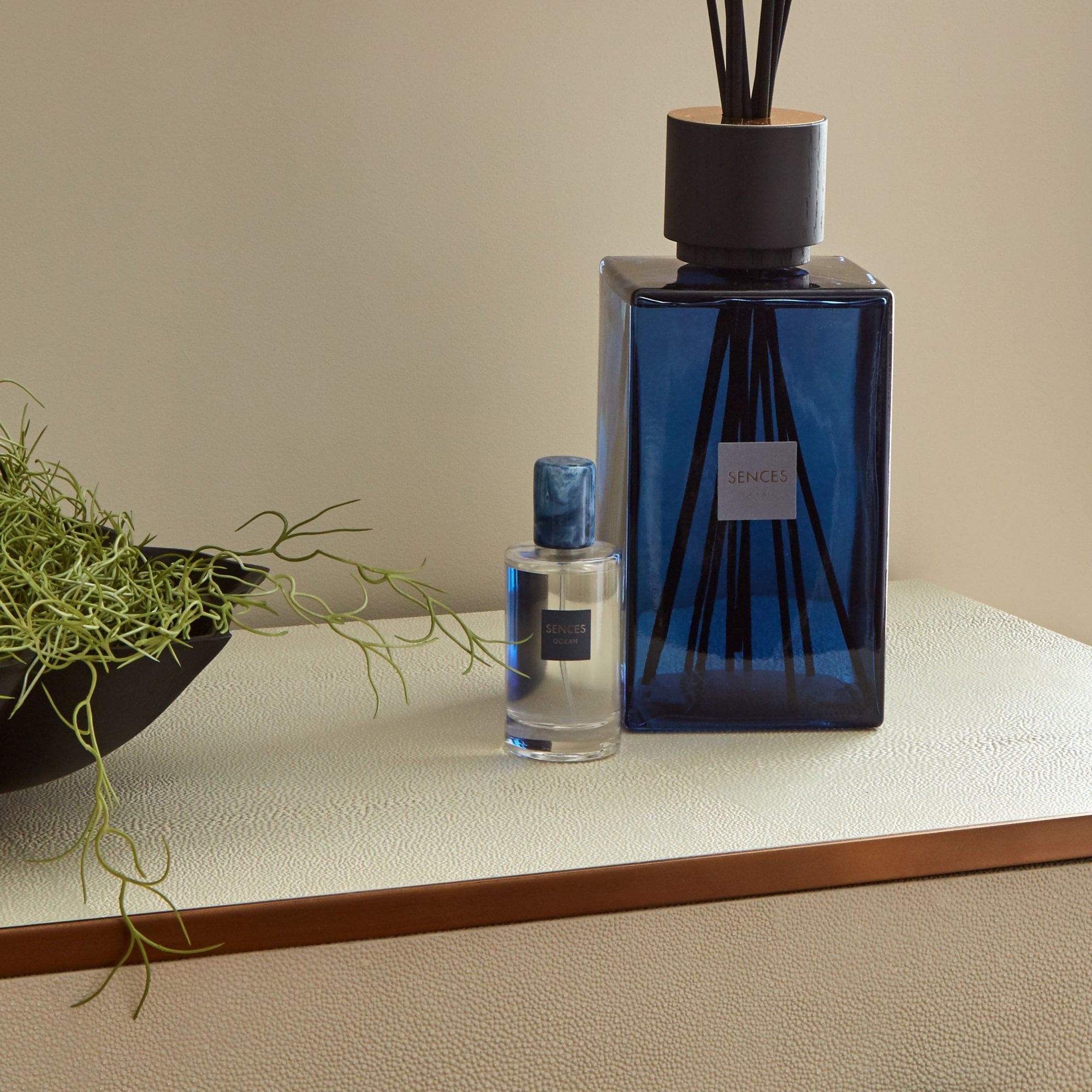 The Sences Ocean Room Spray transports you to the serene depths of the sea with its invigorating and refreshing aroma. This scent captures the essence of a brisk ocean breeze, mixing masculine notes of Cedar with floral notes of Waterlily. Housed in a deep blue diffuser, the fragrances infuses your space with a refreshing and revitalizing ambiance, reminiscent of the vast, open waters.