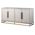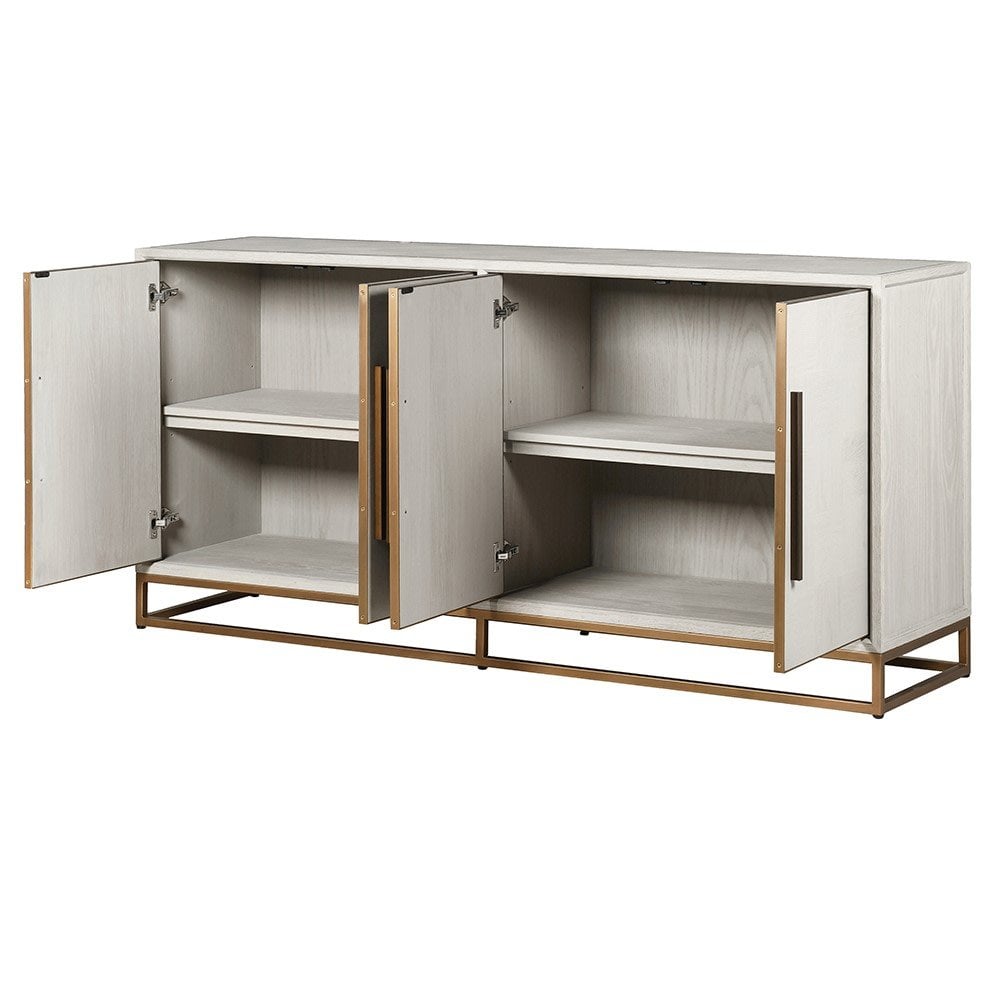 The defining feature of this sideboard is the set of elegant gold metal handles adorning its four doors. These handles, with their sleek and stylish design, serve as functional accents, inviting you to explore the 4 door storage within.