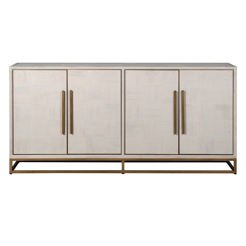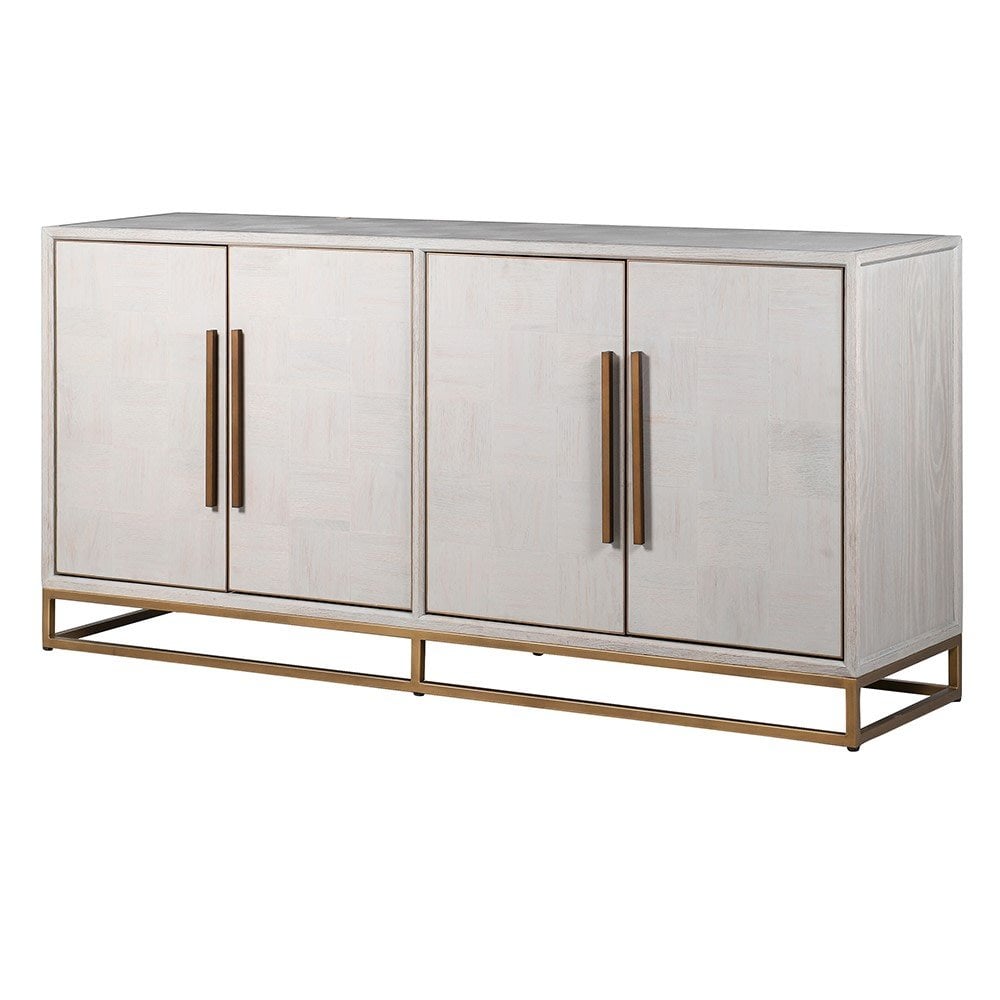Vienna Squares Sideboard Grey Oak Four Door with Gold Handles & Legs