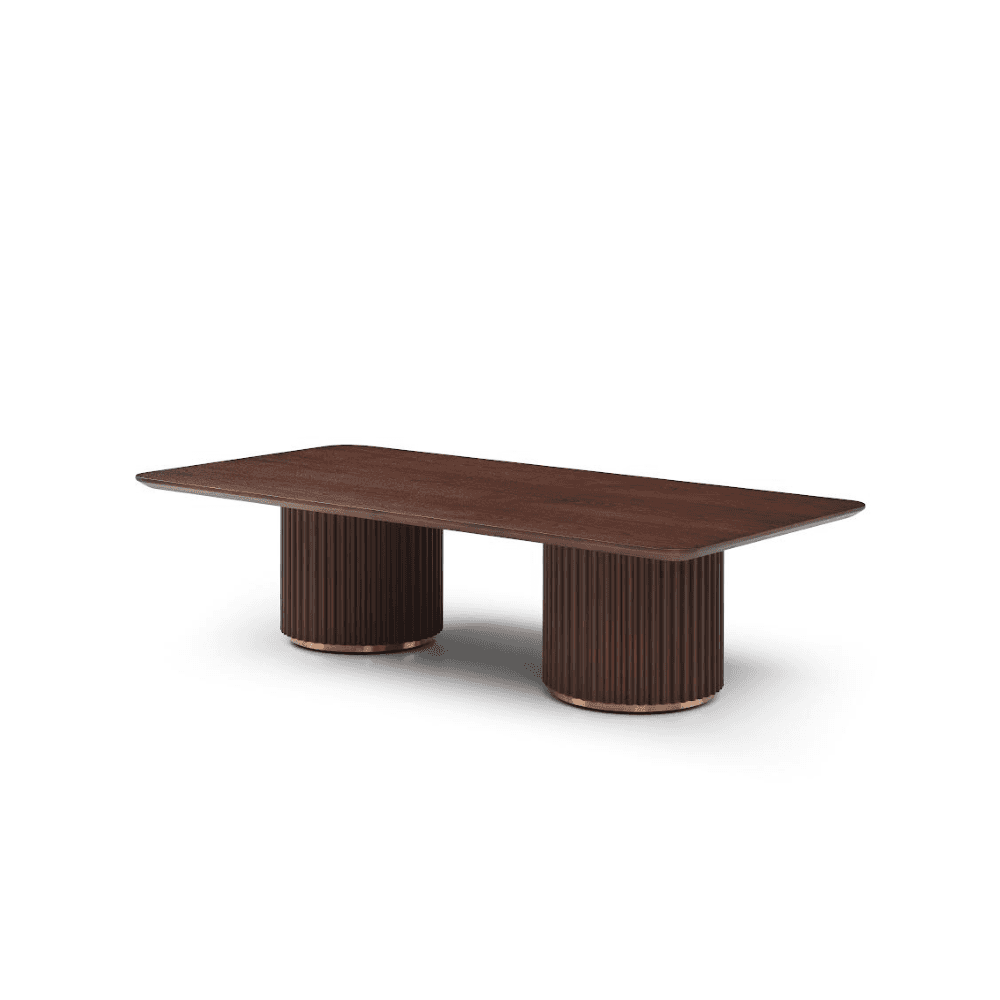 Lantine Walnut & Rose Gold Double Pedestal Coffee Table