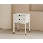 Alcudia Bedside Table Ivory Brushed Wood & Antique Brass Handles & Feet 2 Drawers