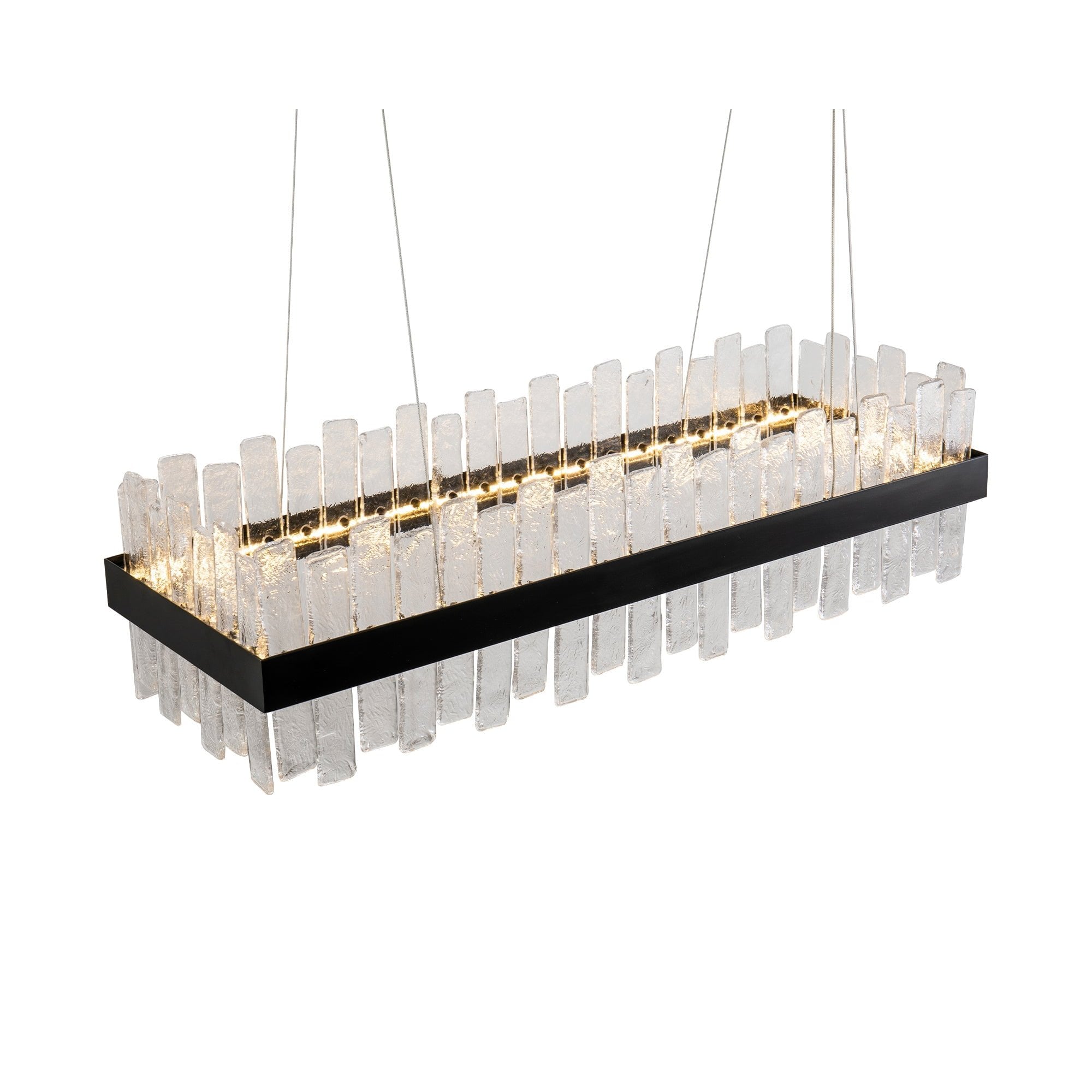 The Aura Pendant Light, with black-finish metal and organic cast glass panels, brings a captivating touch to any space. Perfect for dining areas or games rooms, it features a 36W LED strip. For dimming, use dimmable switches, creating a sophisticated and ambient atmosphere.