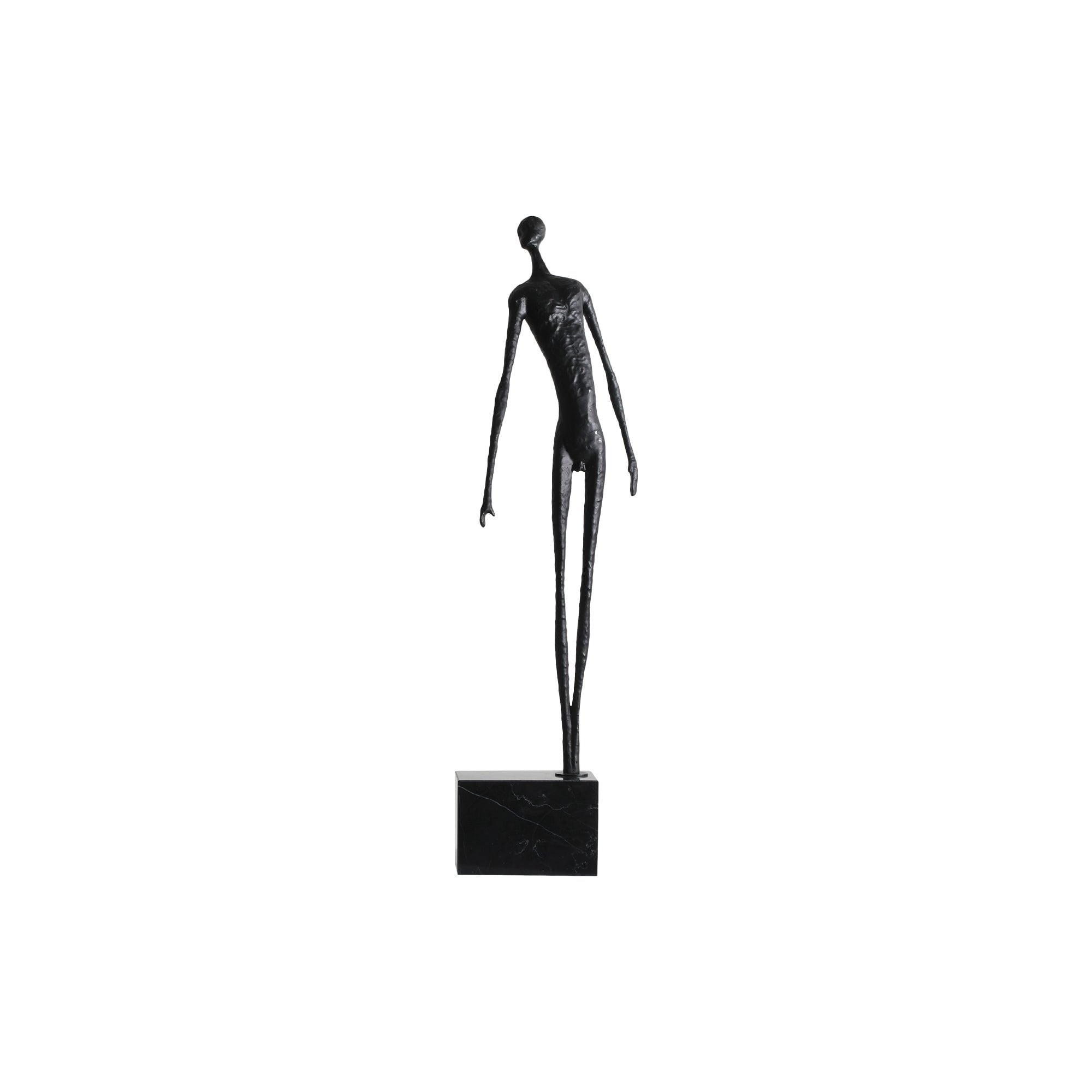 Add a touch of whimsy with the handcrafted figurine featuring a striking black marble base. Meticulously created from durable metal, this playful sculpture effortlessly injects excitement into dull spaces. Its sophisticated form and intricate design stand out against a crisp white backdrop, making it a perfect accent piece for your home or office.