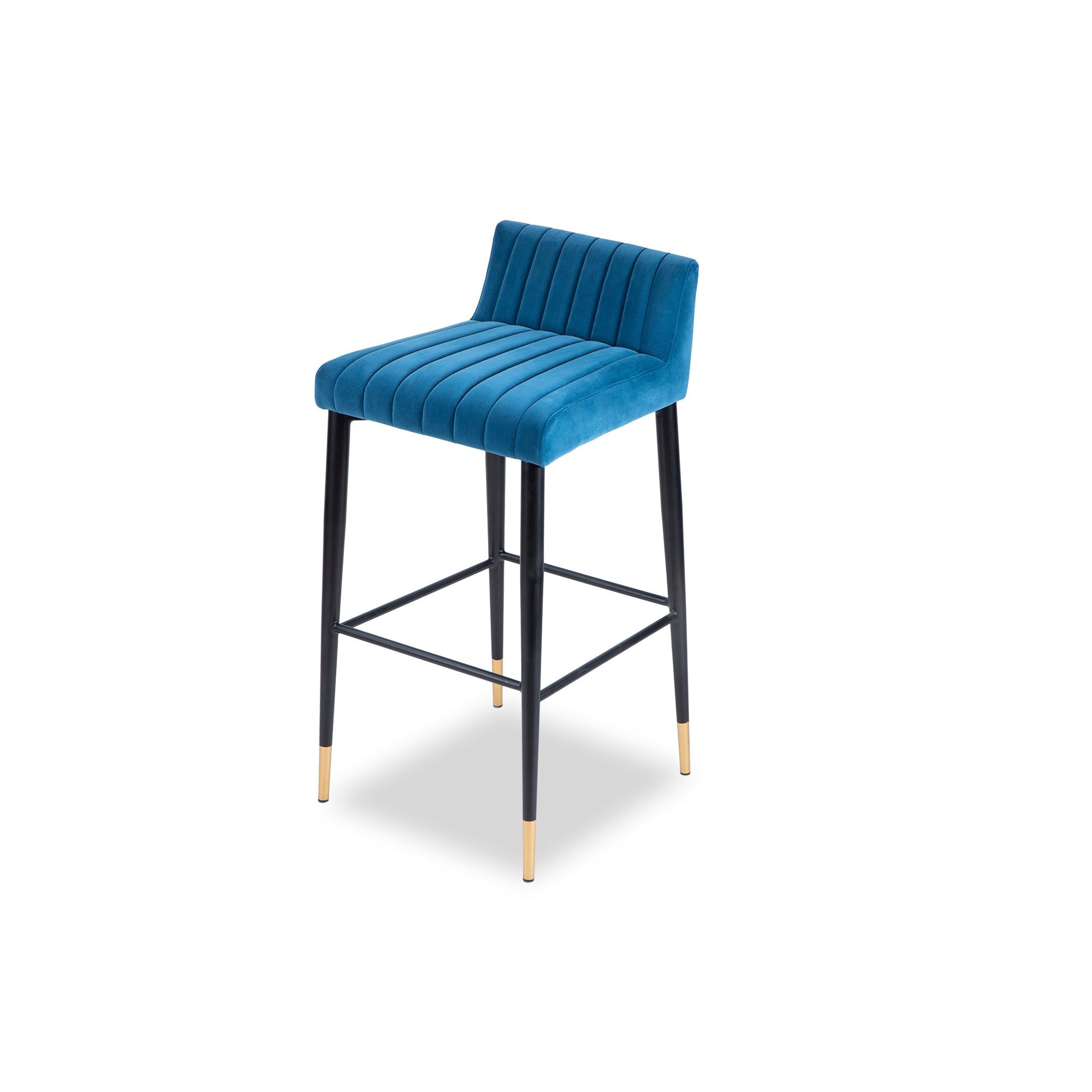 The Coltrane Bar Stool is designed to bring a touch of elegance to any entertaining space. Upholstered in luxurious Toscana Polar Blue Velvet, it features contemporary channeling and a softly supportive seat, ensuring both comfort and style. Tapered matt black steel legs with gold feet add a striking contrast, making this stool not just functional but a remarkable centerpiece in any setting.