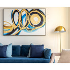 Transform your space with the captivating Cy I Painting, a stunning hand-painted oil on canvas framed in a sleek black composite border. Featuring an exquisite blend of blue and gold tones, this artwork brings depth and elegance to any room. Ideal for both residential and hospitality settings, it effortlessly enhances your décor and evokes a sense of tranquility and sophistication. Let this striking piece become a focal point in your living area or gallery wall, inviting appreciation and admiration from all who enter.