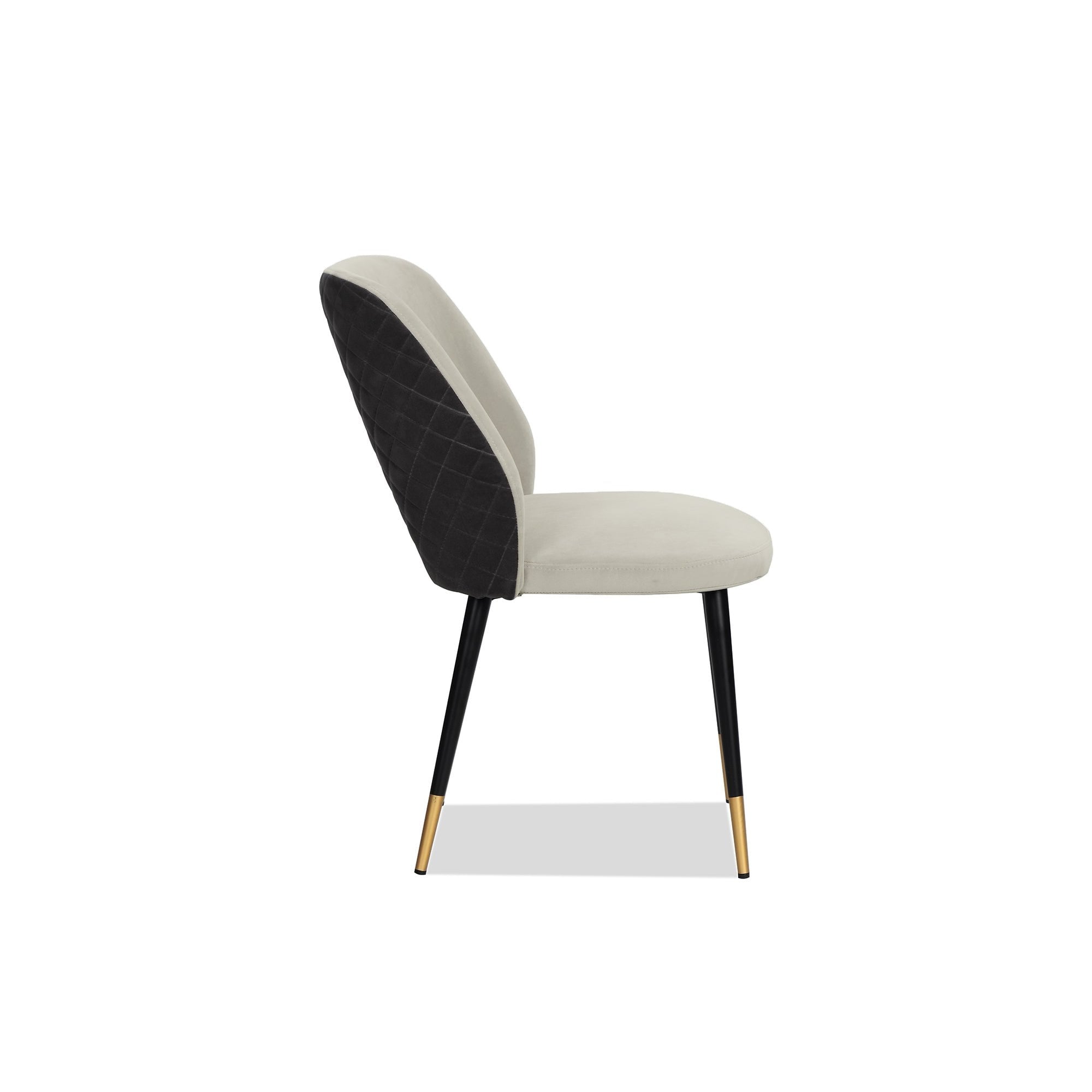 Transform your dining area with the elegant Jagger Dining Chair, beautifully upholstered in striking Kaster Light Grey and Slate Velvet. The sophisticated two-tone colour scheme is complemented by stylish steel legs in matte black with brass-finished tips, creating a luxurious appeal. Ideal for modern residential and hospitality environments, these chairs blend comfort and opulence seamlessly, ensuring a chic dining experience for family and guests alike. Upgrade your dining decor with these elegant chairs that make a statement.