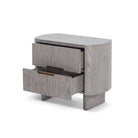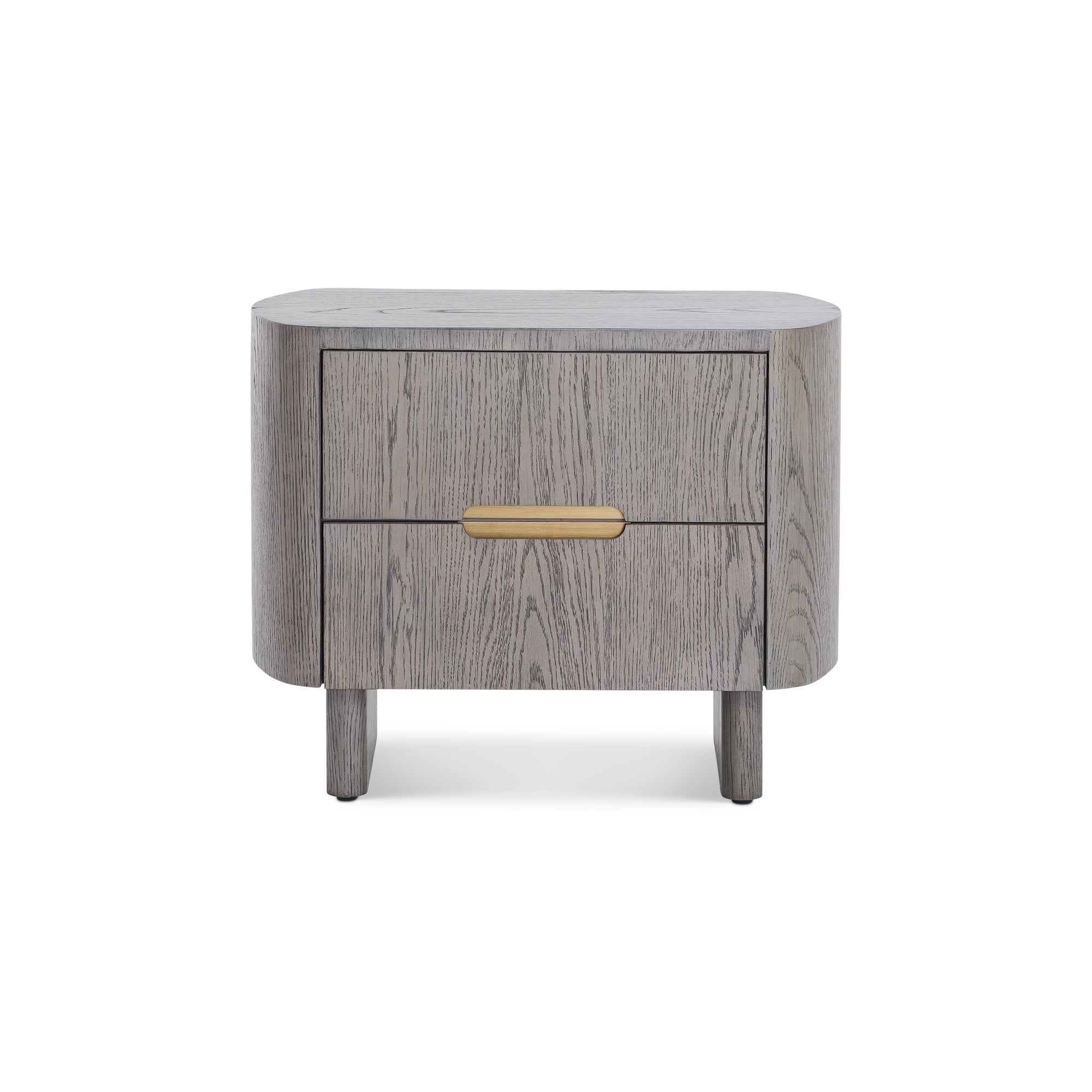 In a realm of modern allure, the Lettos Bedside Table epitomizes style and sophistication. Crafted from silver black ash, featuring striking grey undertones and captivating black veins, its intricate wood lines dance elegantly across the surface. Adorned with brass accents on drawer openings, it combines opulence with practical elegance, offering two spacious drawers framed by sleek legs. This versatile piece integrates seamlessly into diverse interior schemes, making it a perfect addition to both hospitality and residential settings where chic design is sought.