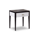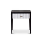 Malibu Bedside Table Black Satin Veneer, Hairline White & Red Lining