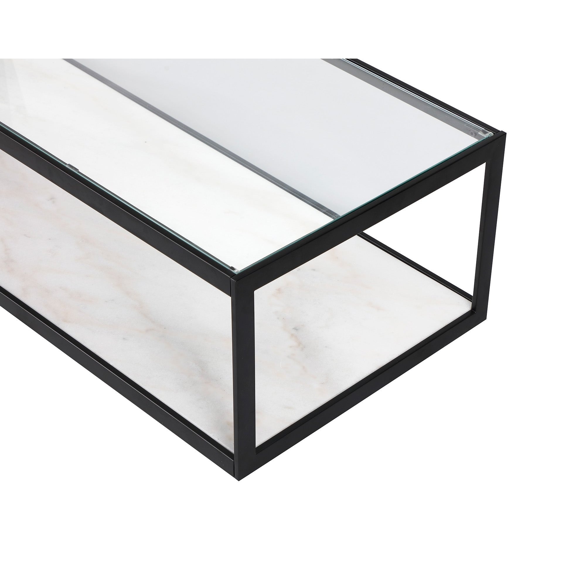Enhance your living space with the Tamon Coffee Table, expertly designed with a clear glass top and a striking matt black frame. Featuring a luxurious white marble undertier, this table marries elegance with practicality. Perfect for both contemporary homes and upscale hospitality settings, it brings sophistication and style to any gathering space.
