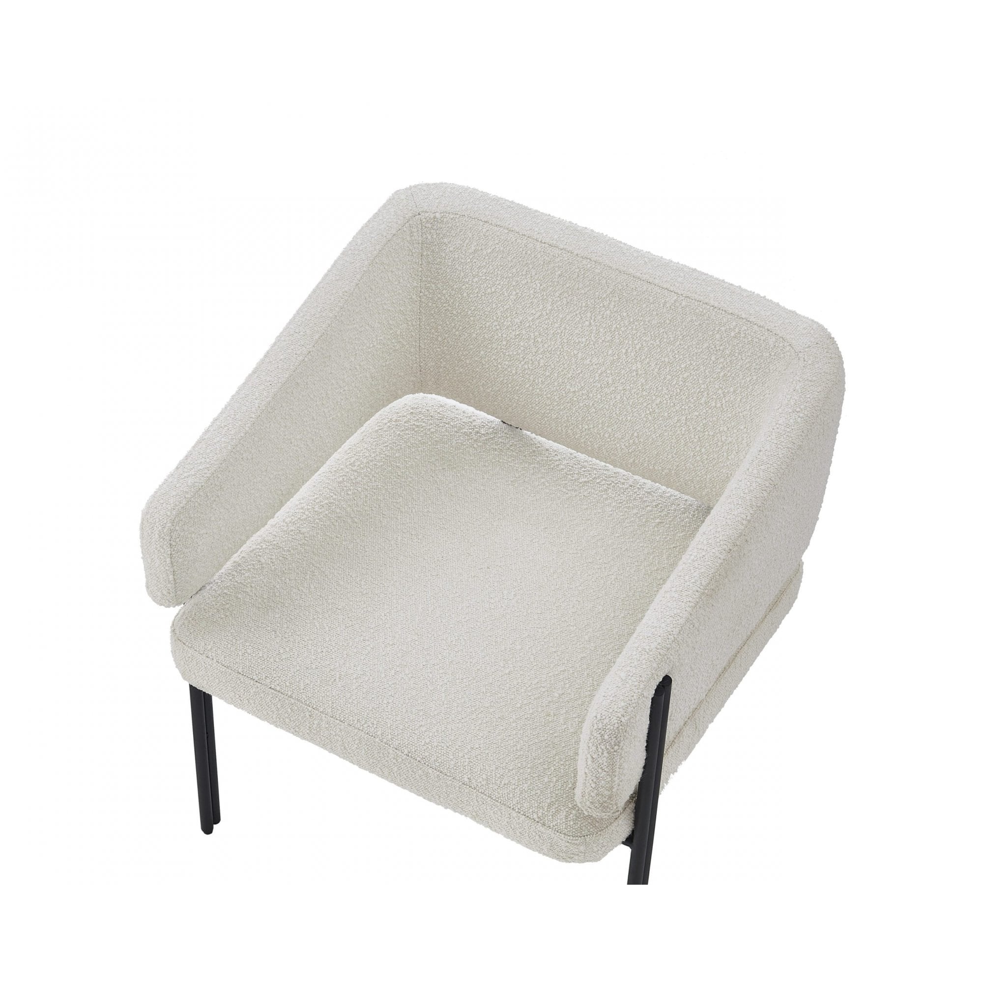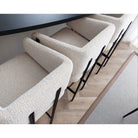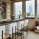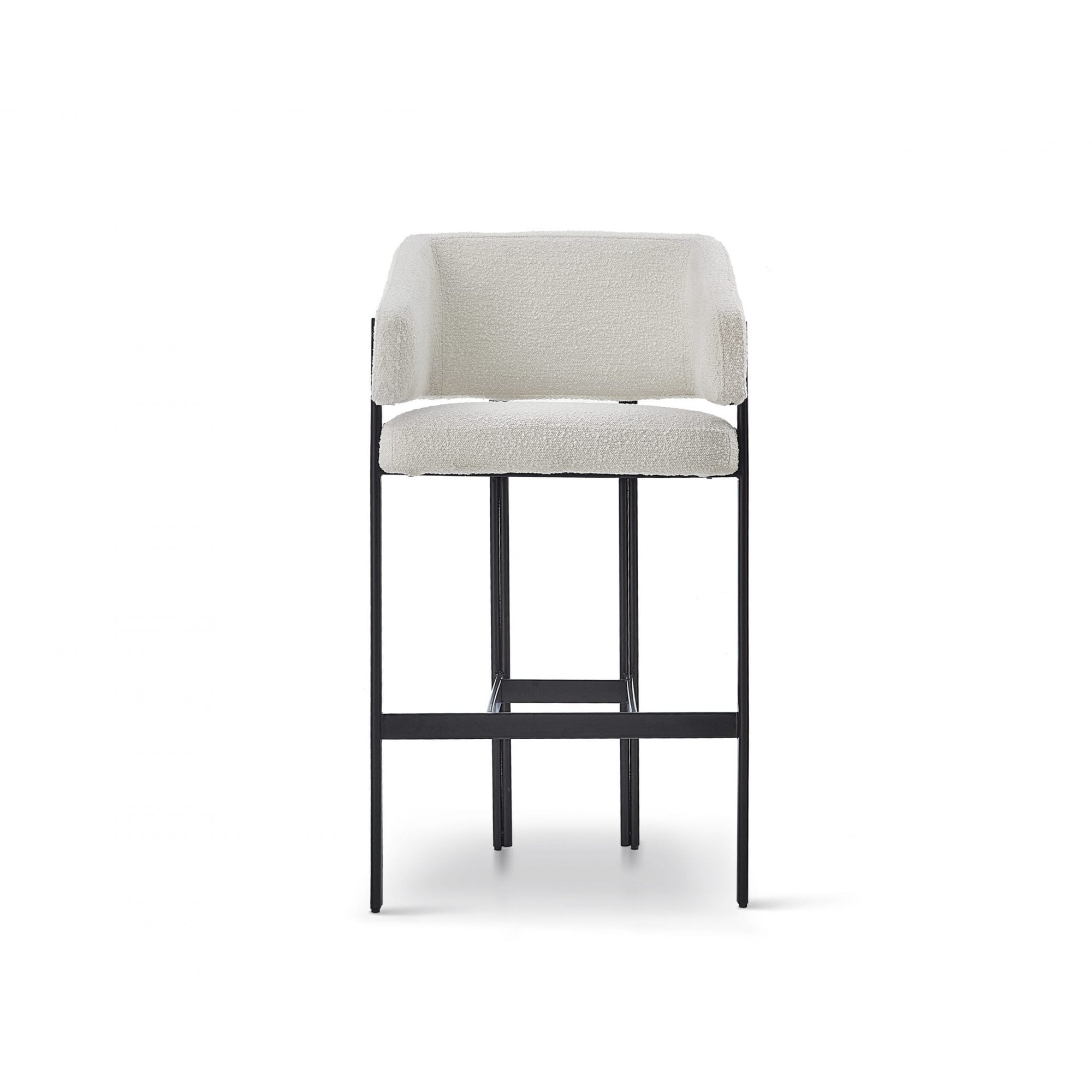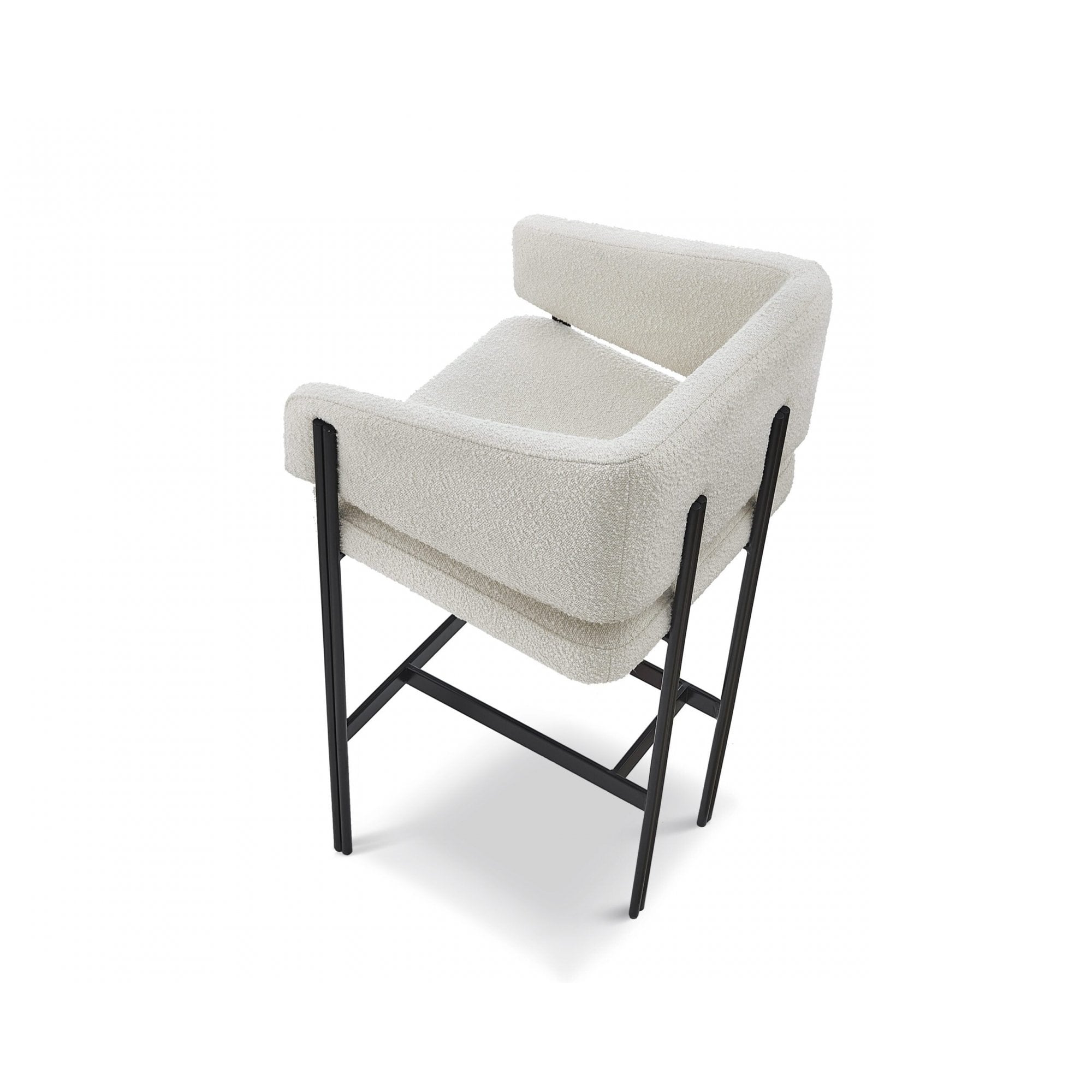 Elevate your decor with the Tatler Bar Stool, featuring a cosseting curved back and sloping armrests, all supported by robust matt black coated steel legs. The sumptuous boucle sand upholstery combines Art Deco elegance with modern flair, making it an ideal choice for a chic breakfast bar or a sophisticated club environment, perfect for hospitality venues and stylish homes alike.