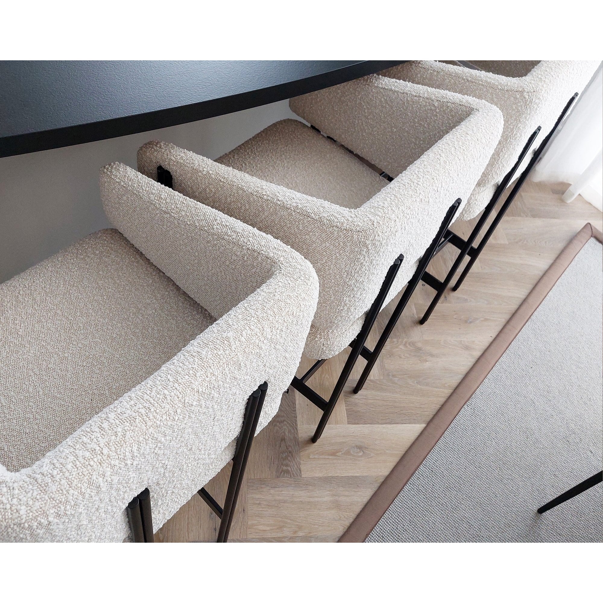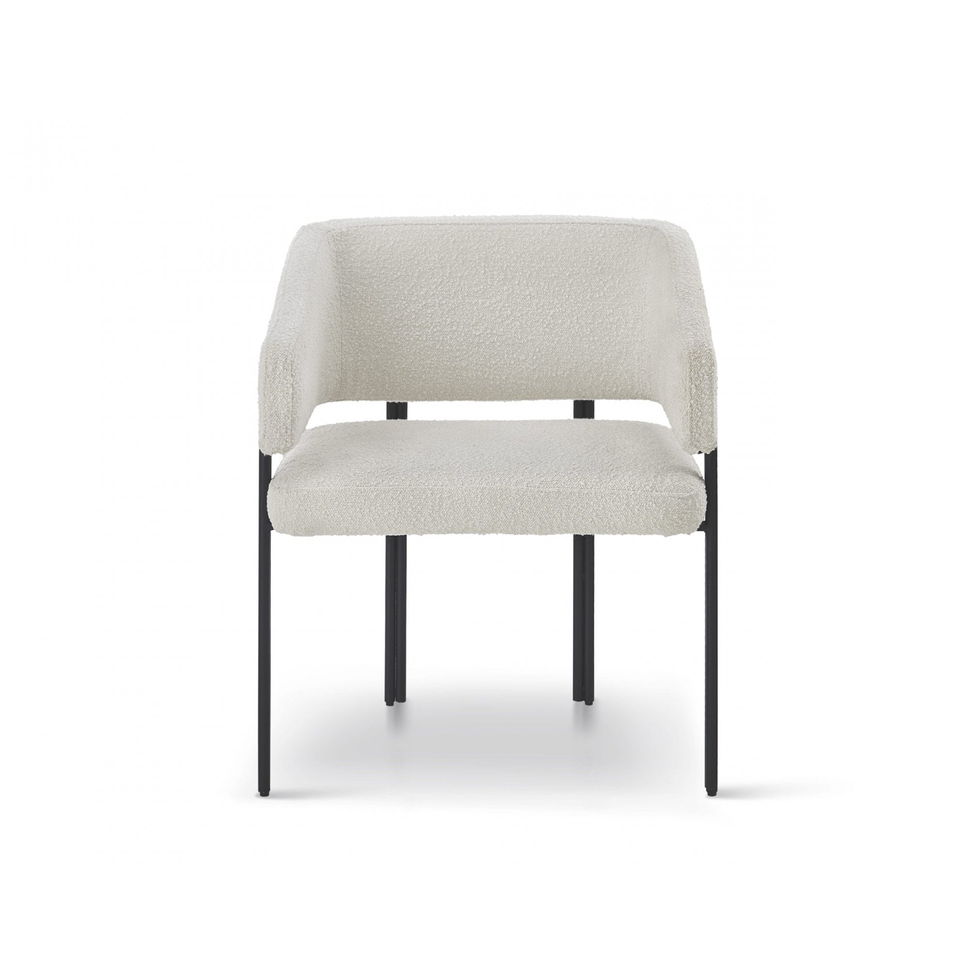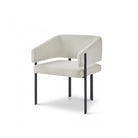 Indulge in the luxurious design of the Tatler Dining Chair, showcasing a comforting curved back and sloping armrests, finished with trendy matt black coated steel legs. Upholstered in plush boucle sand, this chair exudes elegance and sophistication, transforming any dining area into a chic statement space. Perfect for both residential and hospitality environments, it’s where comfort meets style.