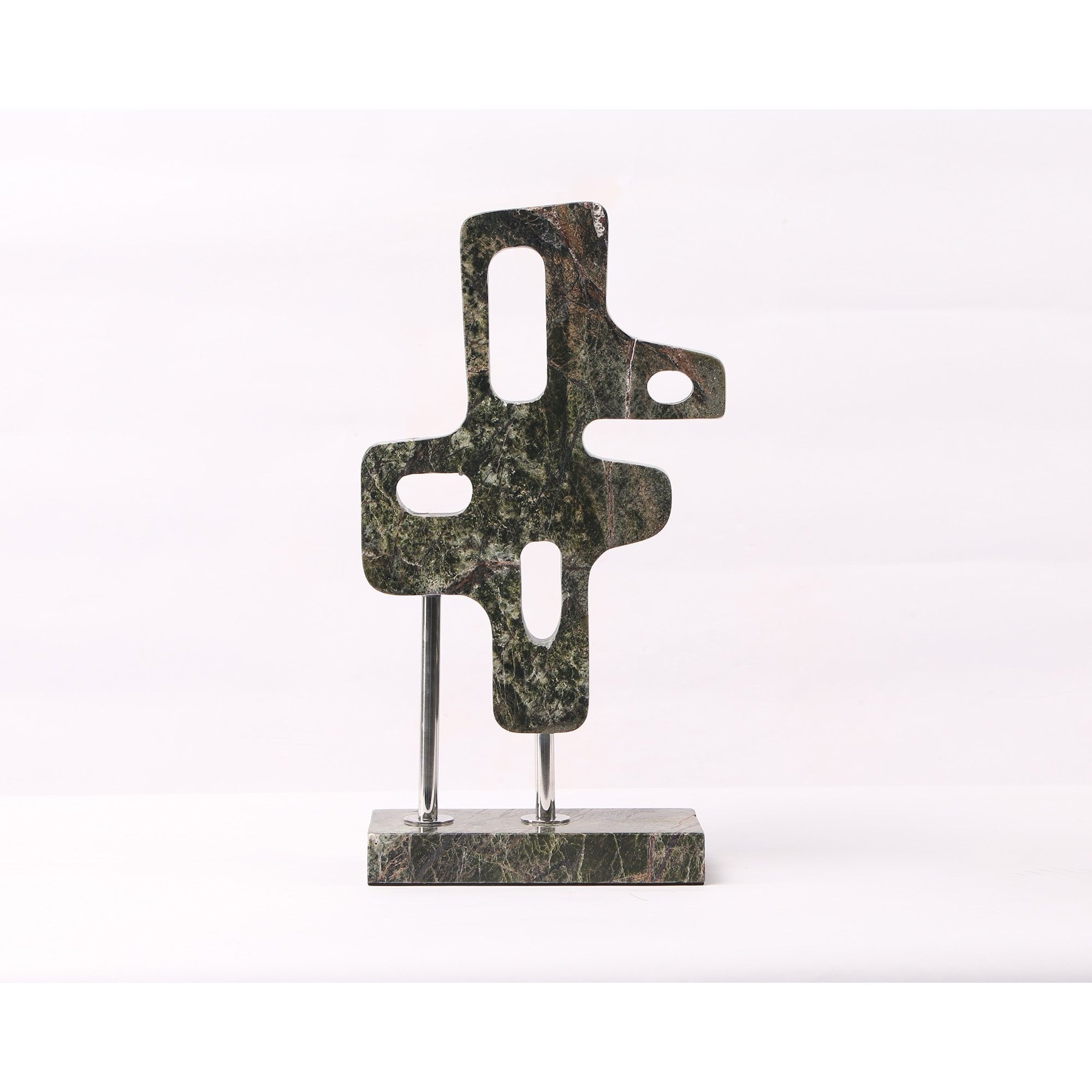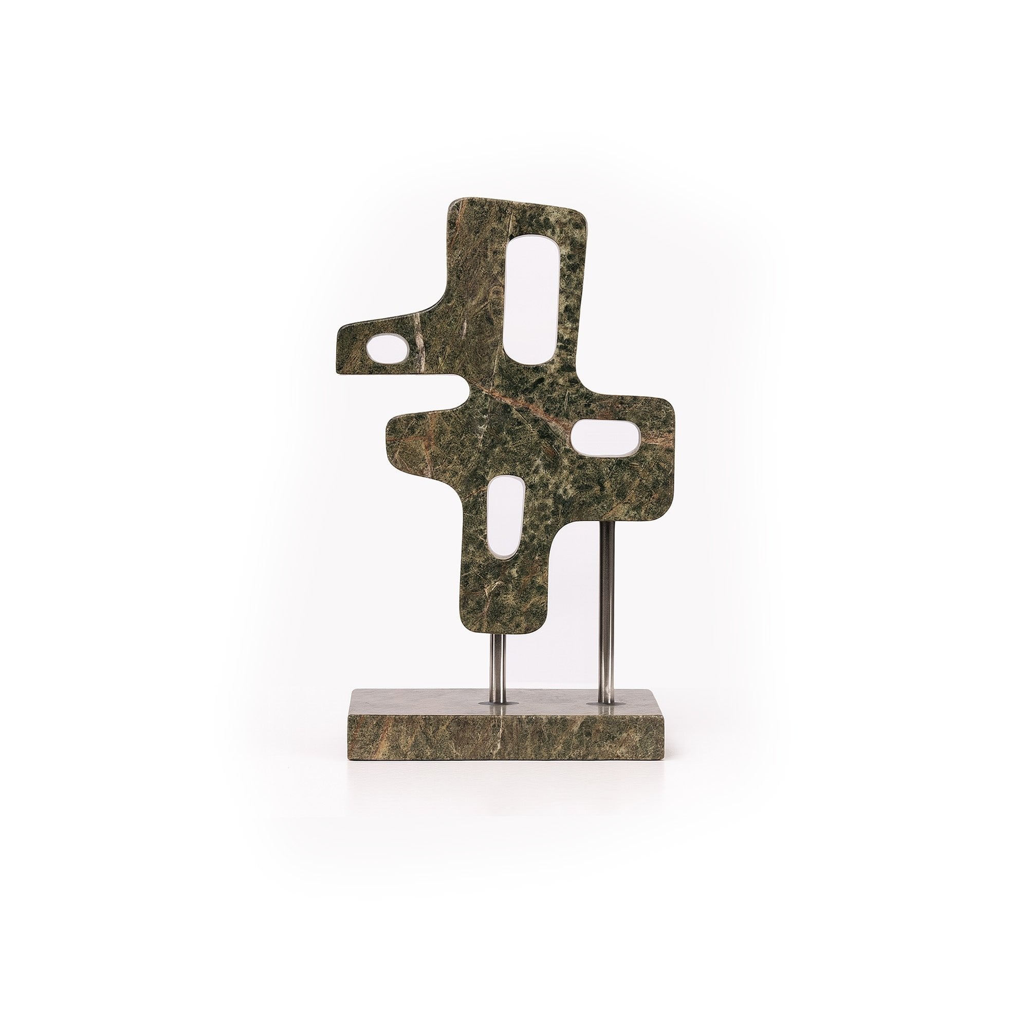 Inspired by marine forms, the Thaloris Sculpture introduces a calming fluidity. Cast in Rainforest Green Marble and a Stainless Steel Stand.