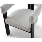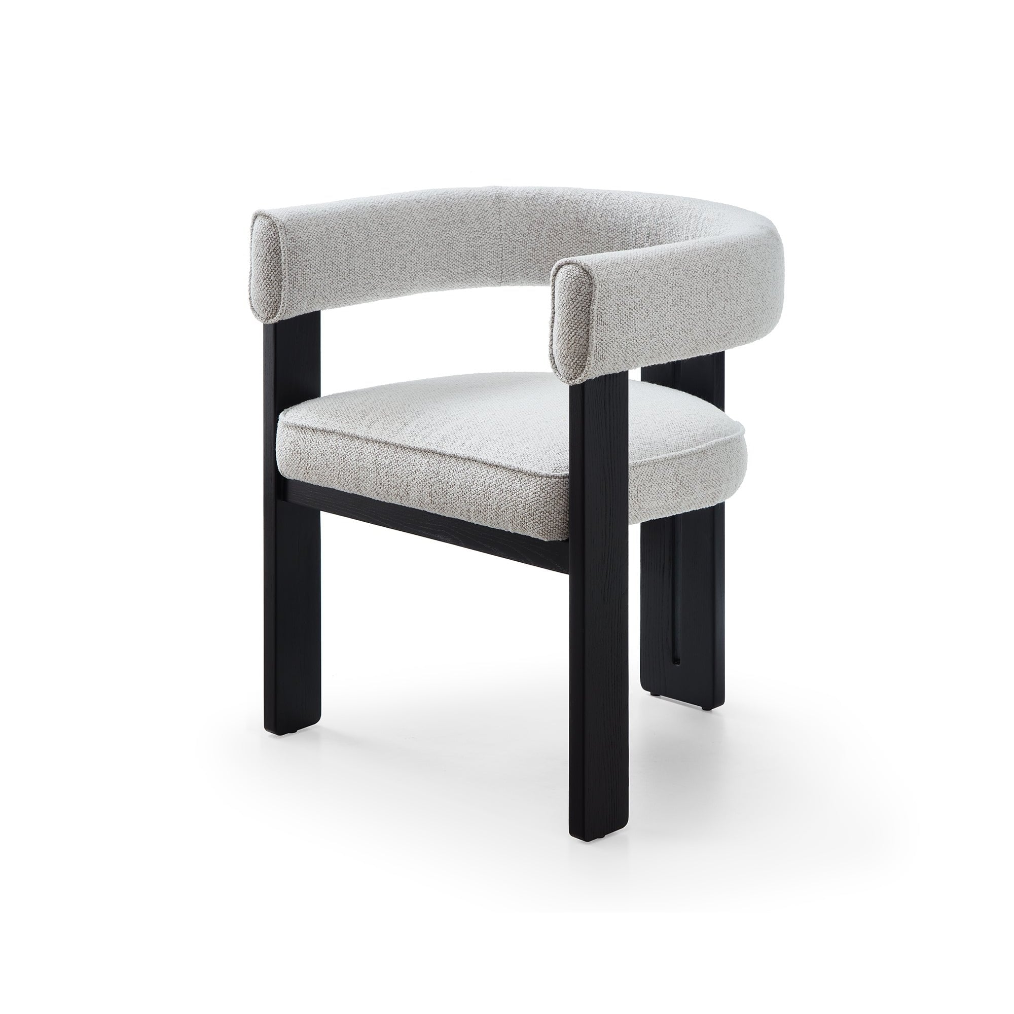 The Tilda Dining Chair features elegant Boucle Ruby Ice upholstery, providing a perfect blend of warmth and modern design. Its solid wood frame guarantees durability, while the sophisticated mix of curves and straight lines enhances any dining experience. Comfortable and chic, it makes a stylish addition to your home, perfect for creating inviting meal settings in both residential and hospitality contexts.