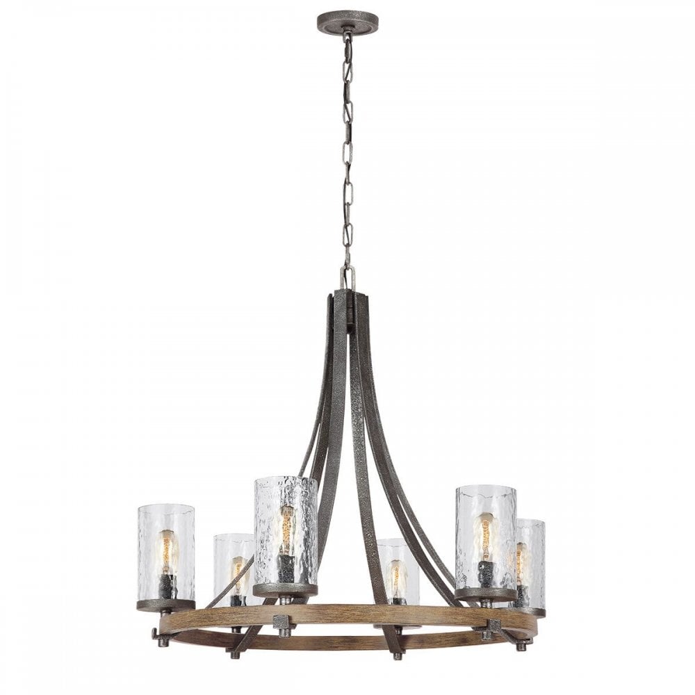 Angelo Chandelier Oak & Slate Grey Metal 6 Light