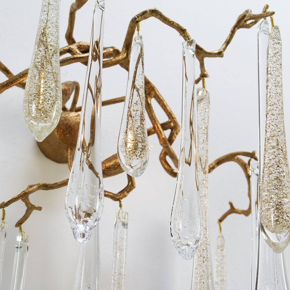 Inspired by Winter water drops. The Aqua Collection is an iconic set of the Serip family, both by its element of inspiration and by its inherent association with our identity, expressing a strong connection to our main inspiration source, nature. The bronze structure expands in entangled branches that lead to floating glass pieces, a characteristic that concedes an airy touch together with its delicate and elegant look, concepts visible in the smallest detail of the glass drops. Through several chromatic choices and design options, the Aqua Collection presents itself as an exquisite nature-inspired piece, perfect for any concept.
