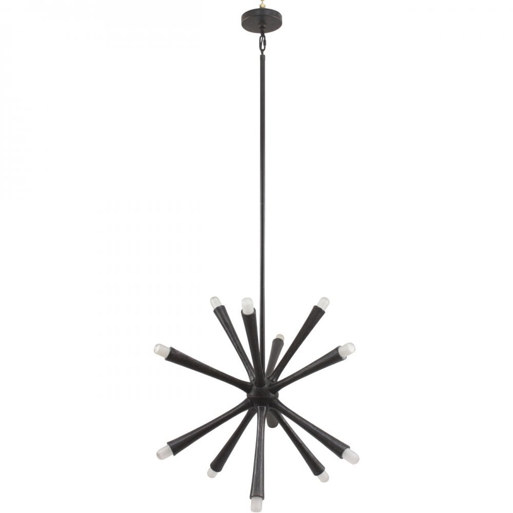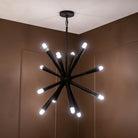This striking Arren chandelier in sputnik style format is crafted from solid cast aluminium in a hand-gilded finish. Its bold, radiating design boasts 11 sleek arms extending outward, creating a dynamic centrepiece ideal for modern interiors. The chandelier comes with a coordinating ceiling rose, offering a contemporary statement that marries mid-century inspiration with industrial sophistication. Arren is designed for G9 bulbs (not included), and must be installed by a qualified electrical professional.