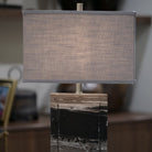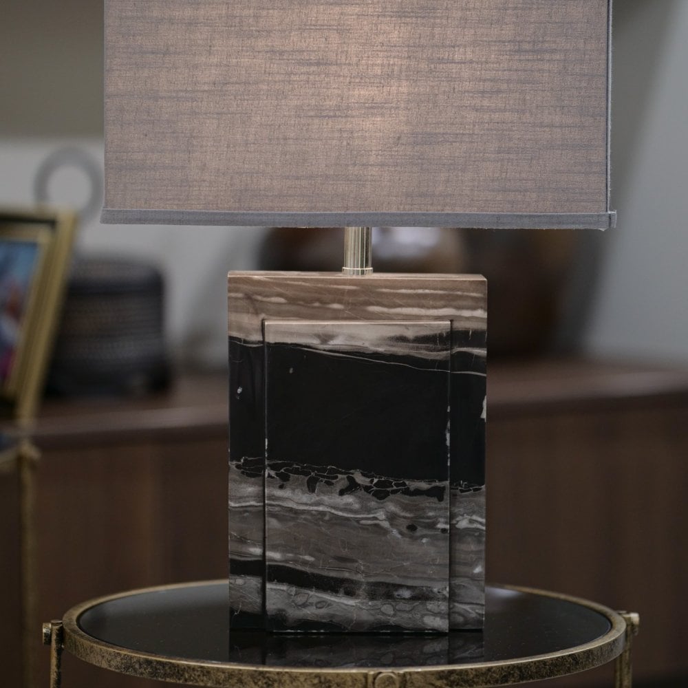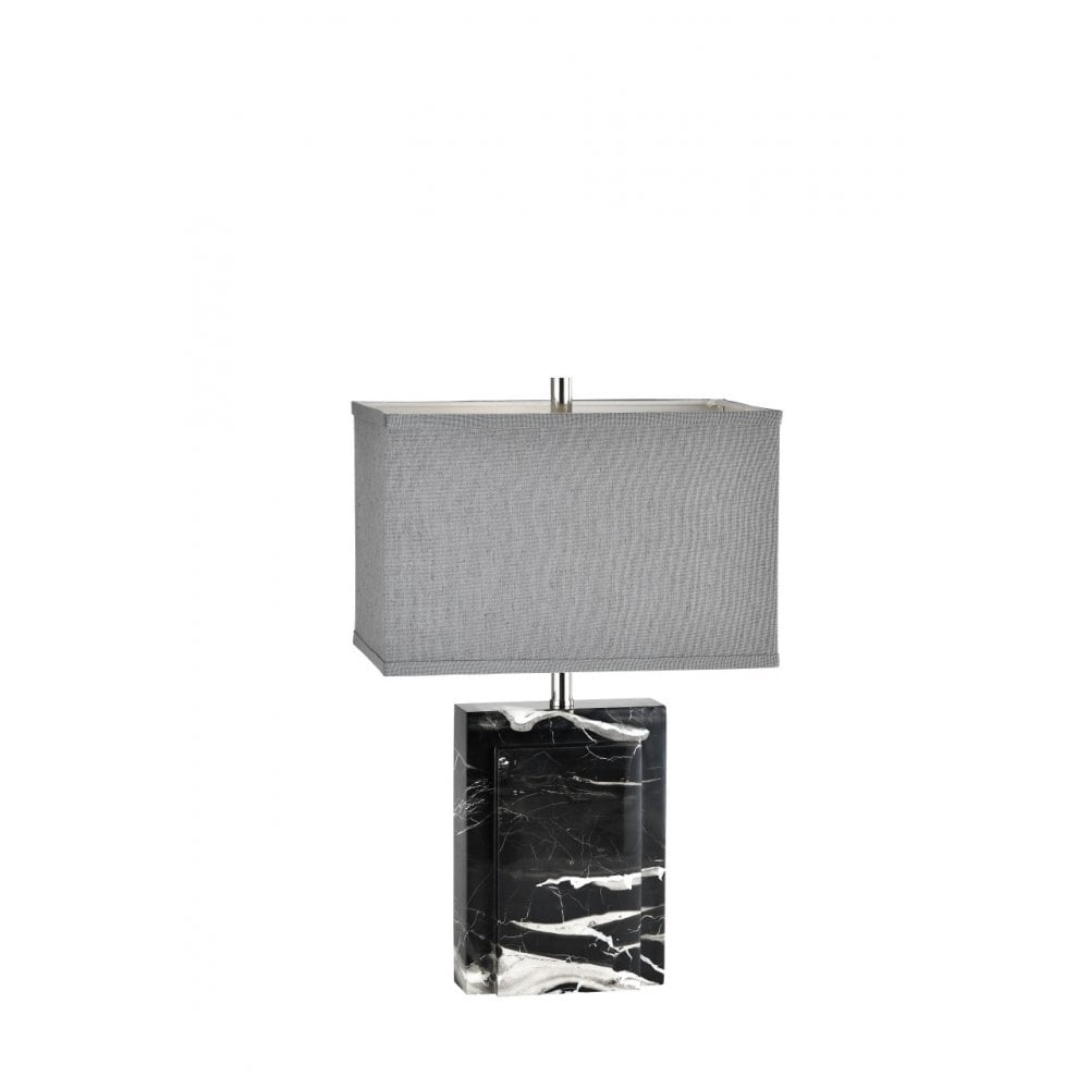 Marble-finished base and charcoal shade. Chrome Accents Sleek & Contemporary in design. Ideal for any room in the home.