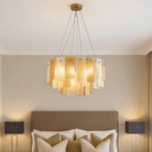 Azzura Gold Pendant Light with Diamond-Etched Glass Shades