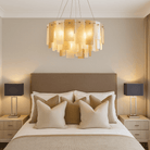 The Azzura Pendant Light Collection combines elegance and versatility with its striking diamond-etched glass shades in Clear, Frosted, and Cognac finishes. Each pendant is paired with a warm, luxurious gold metal frame, adding a touch of glamour to any interior. The intricate etched detailing enhances light diffusion, casting subtle reflections for a soft, atmospheric glow. Ideal for smaller bedrooms and lounges, the Azzura range is perfect for those seeking decorative glass pendant lighting with a modern gold finish.